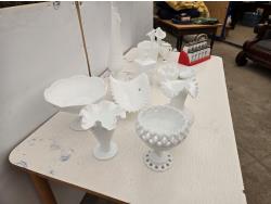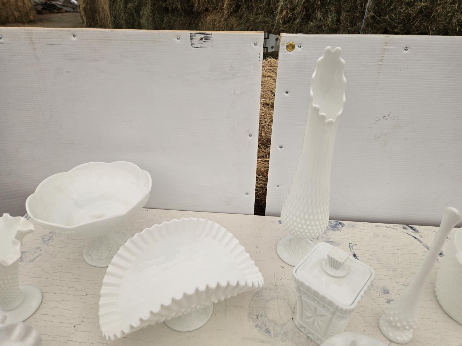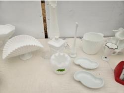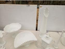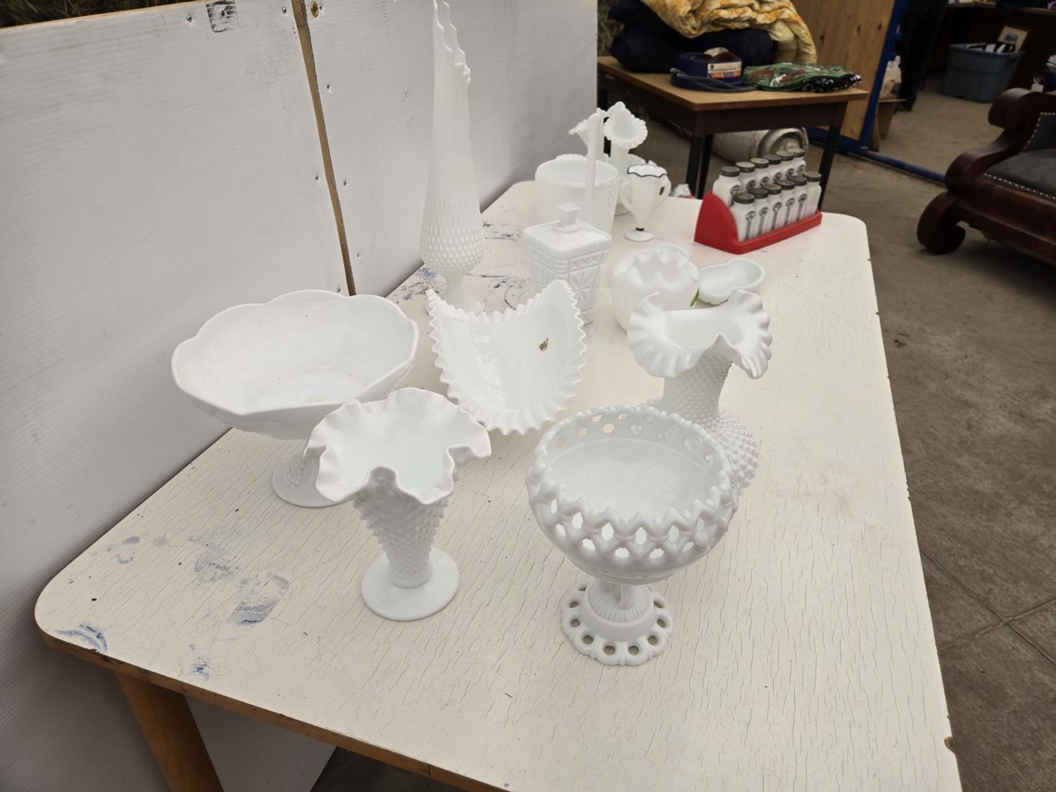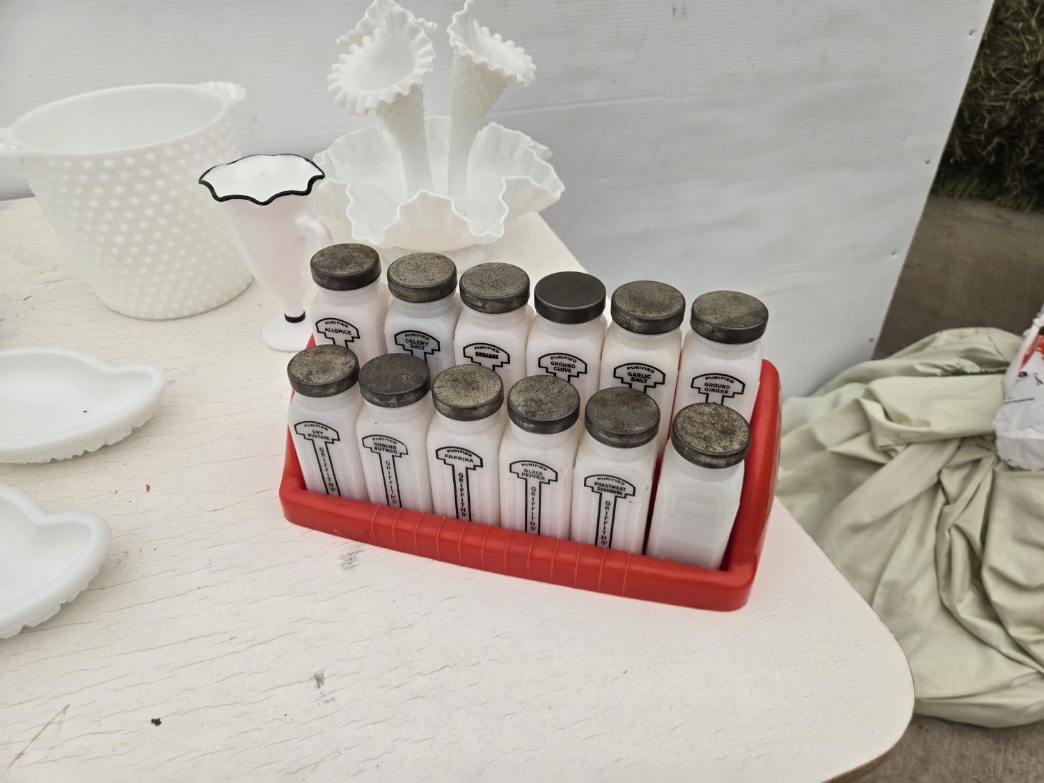 131 (14) Pieces of Milk Glass & (12) Piece Milk Glass Spice Rack