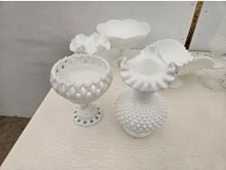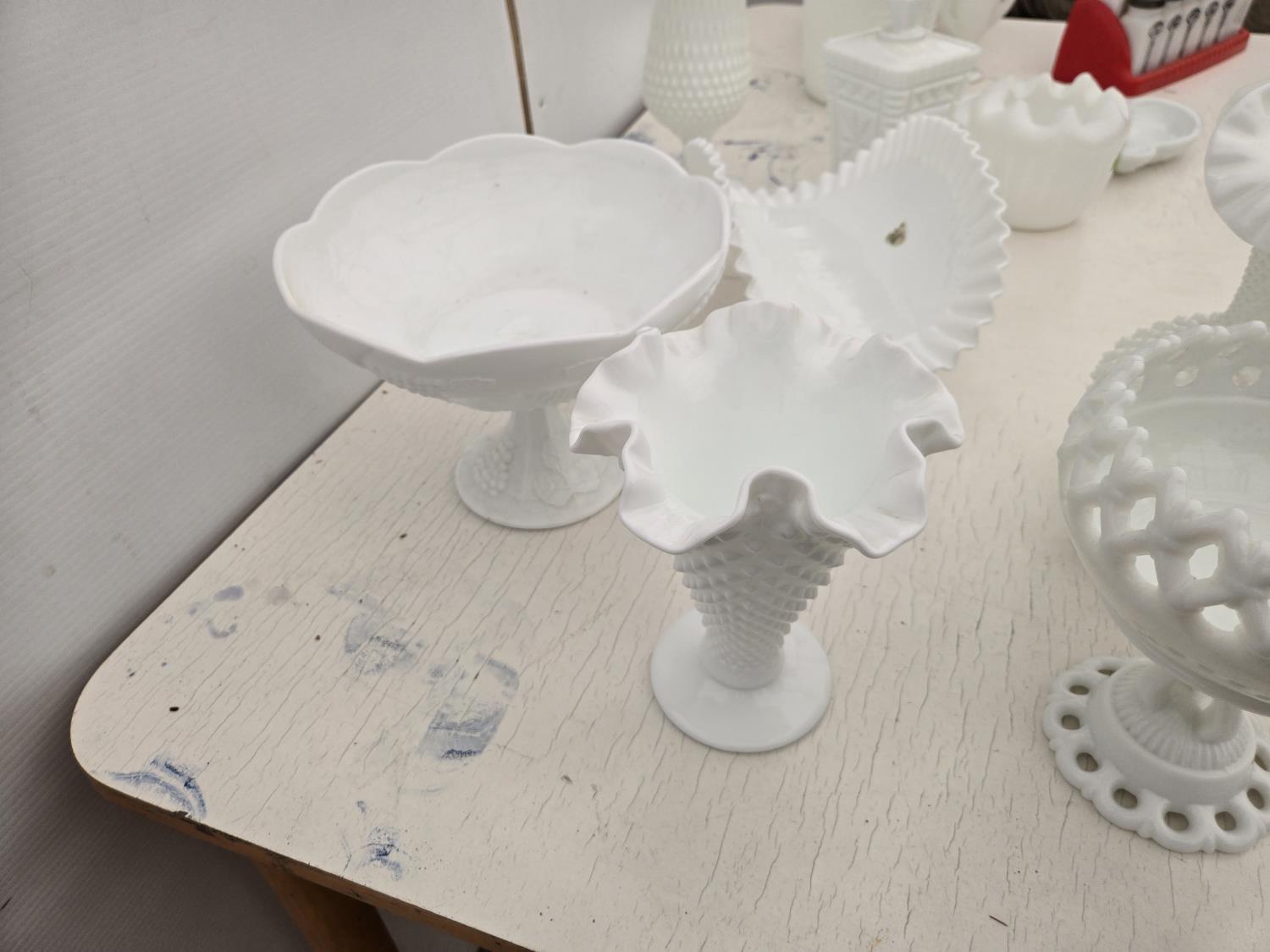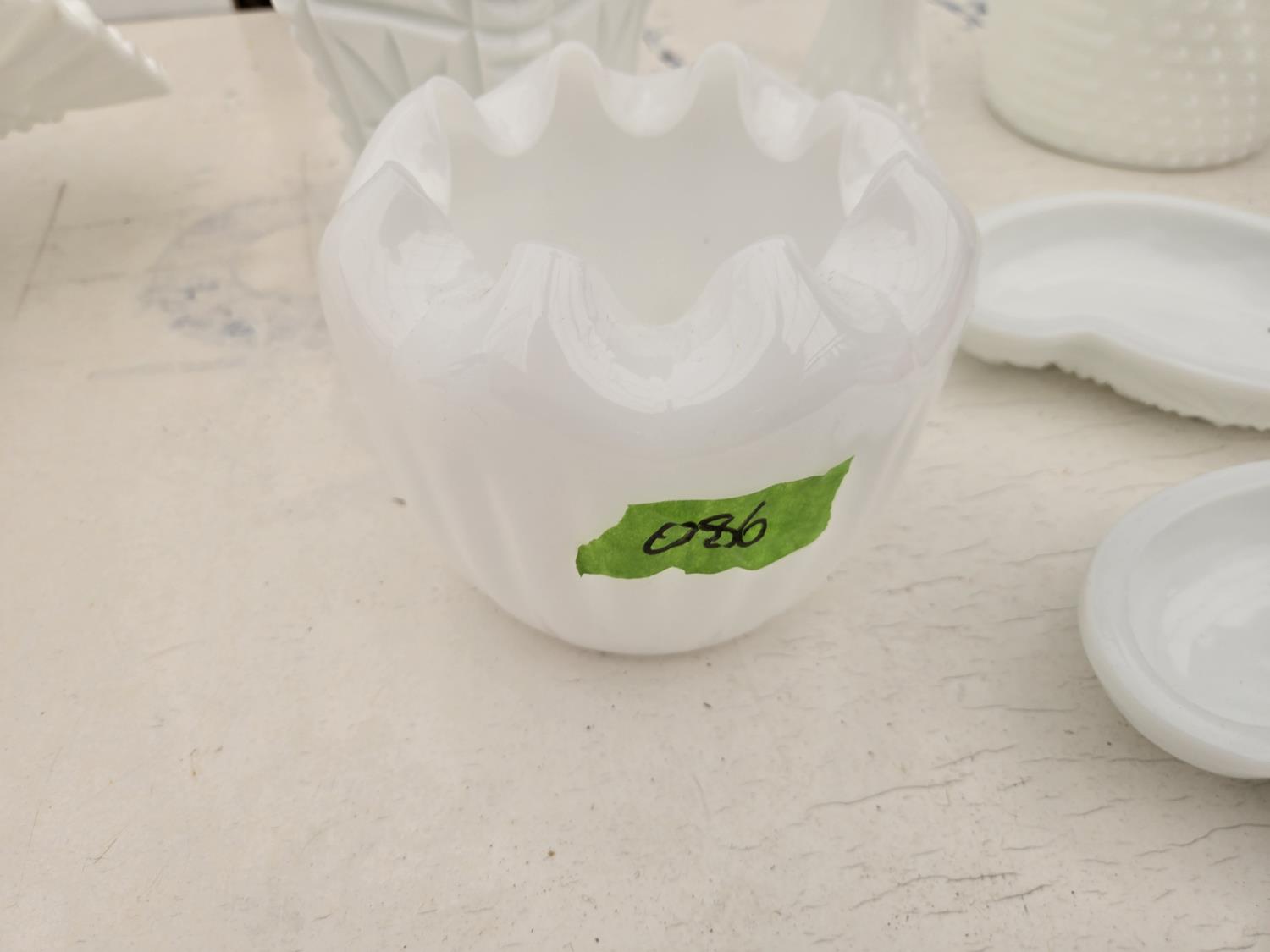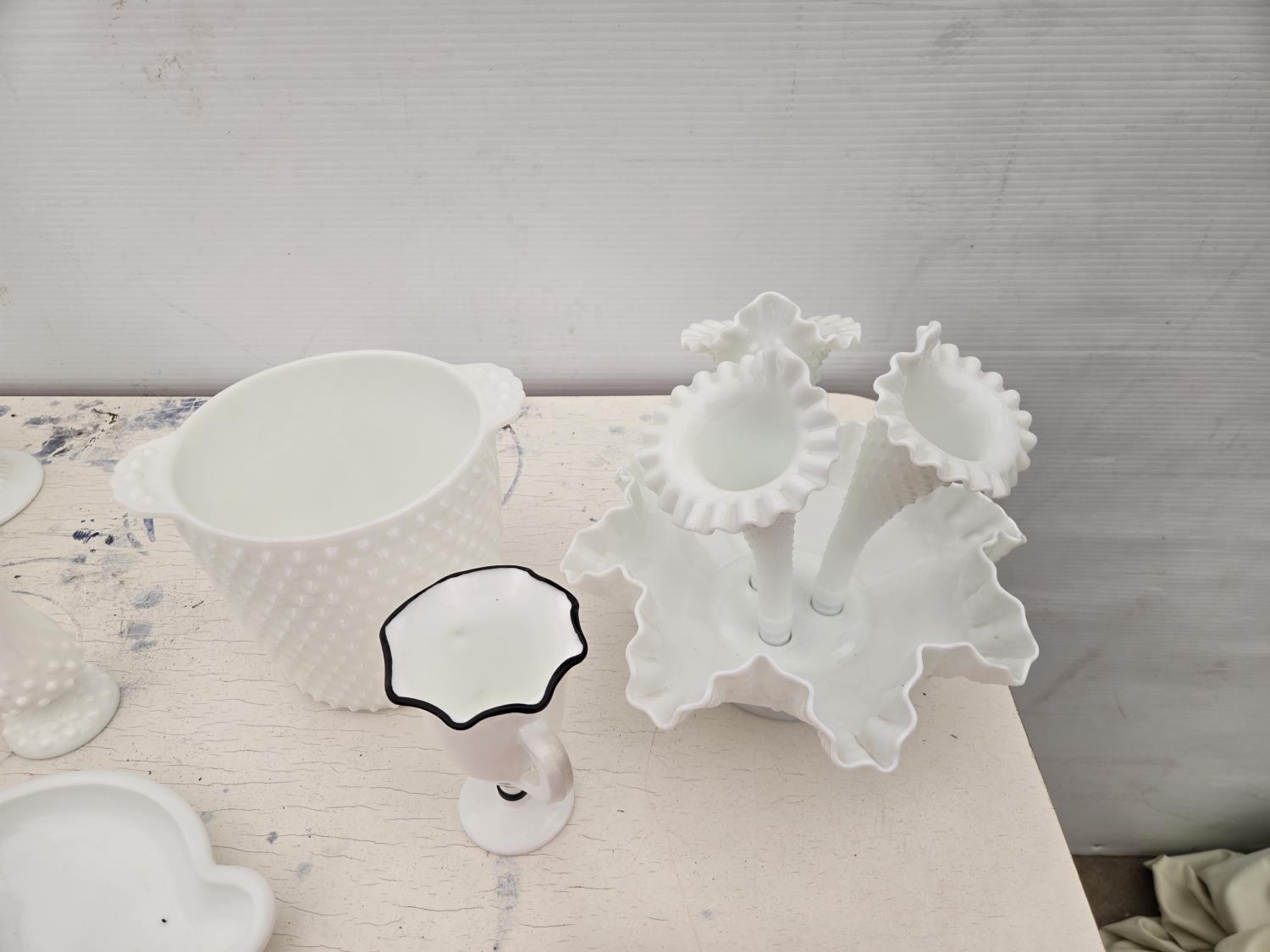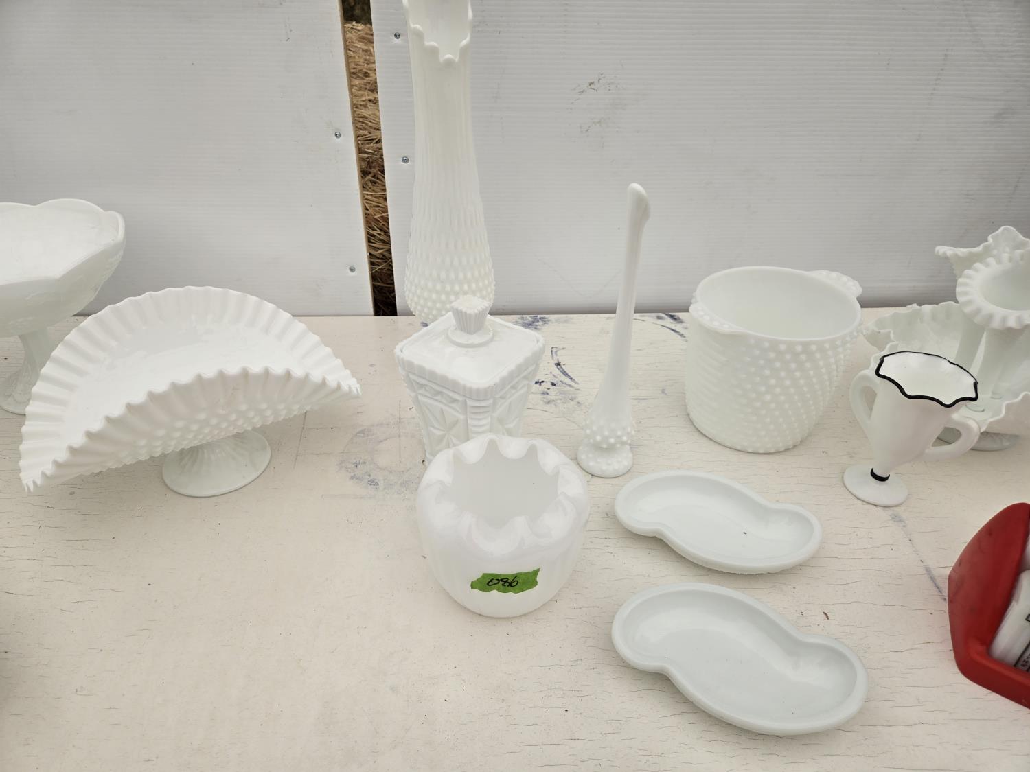 131 (14) Pieces of Milk Glass & (12) Piece Milk Glass Spice Rack