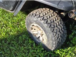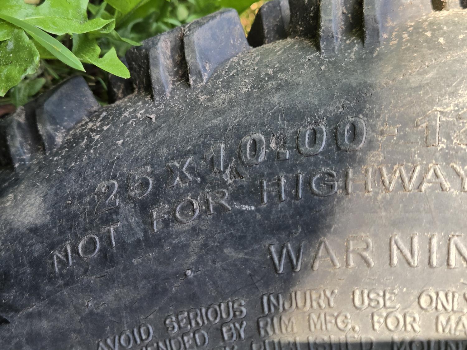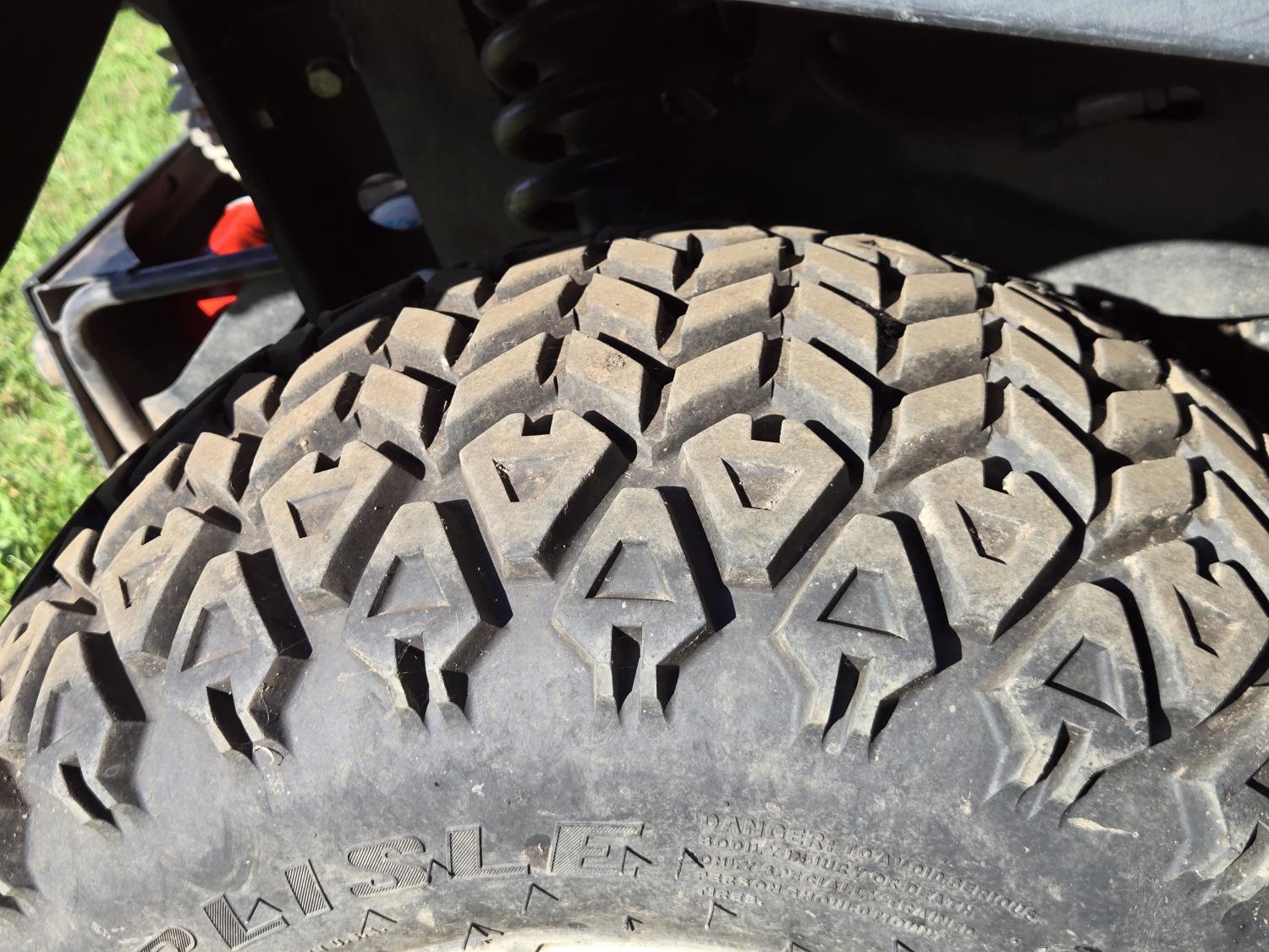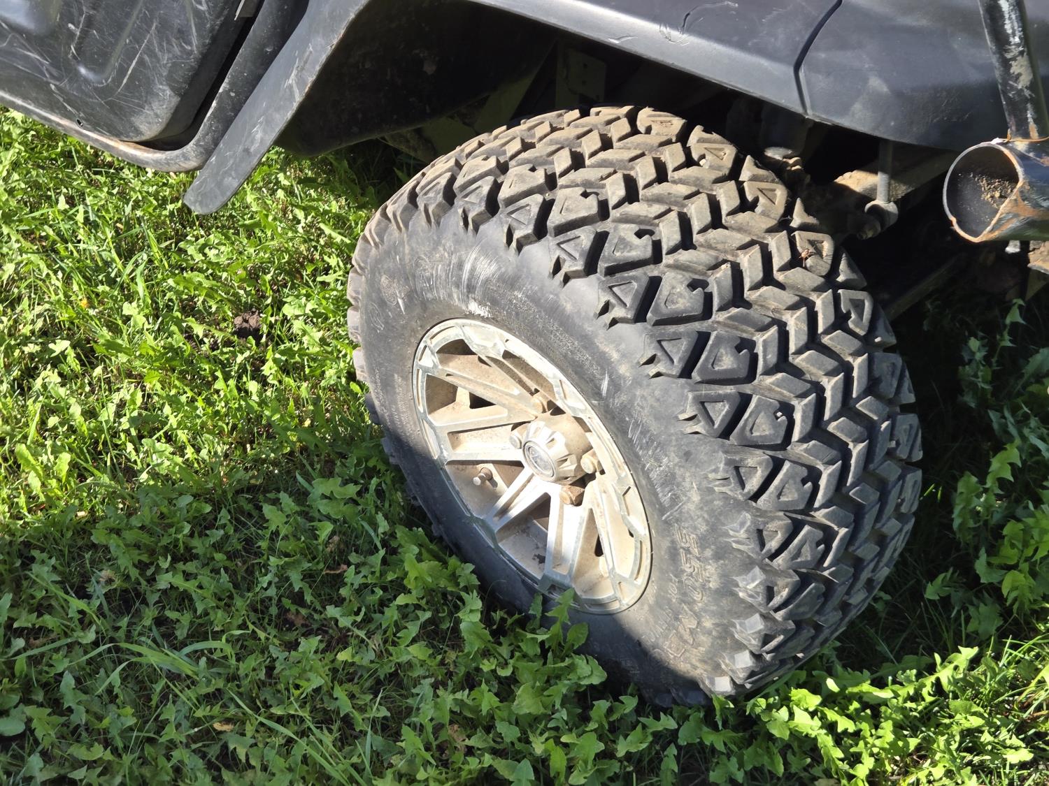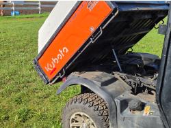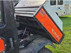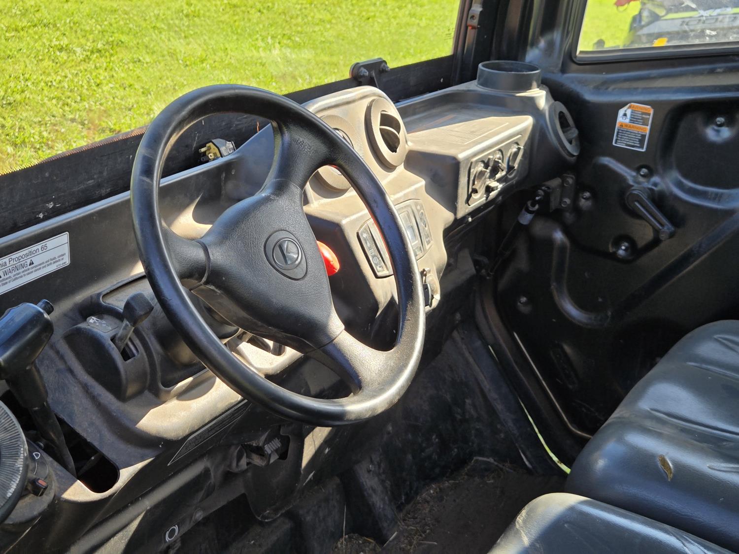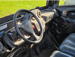 1000 cc water cooled diesel engine, Hi/Lo range, reverse, 2 door enclosed cab, A/C, heater, power steering, hydraulic dump box, hydro transmission, 25X10.00 tires