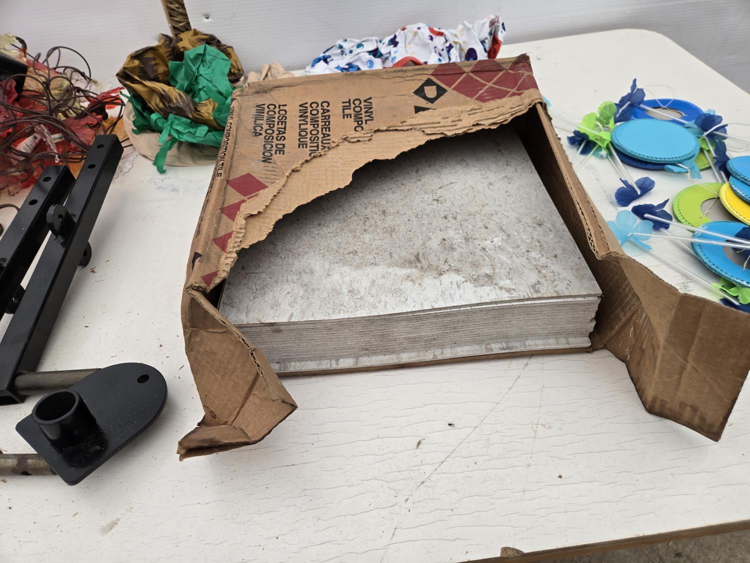 157 Lawnmower Parts, Outdoor Lights, Blow Up Pool Toys, X 12 Vinyl Tiles