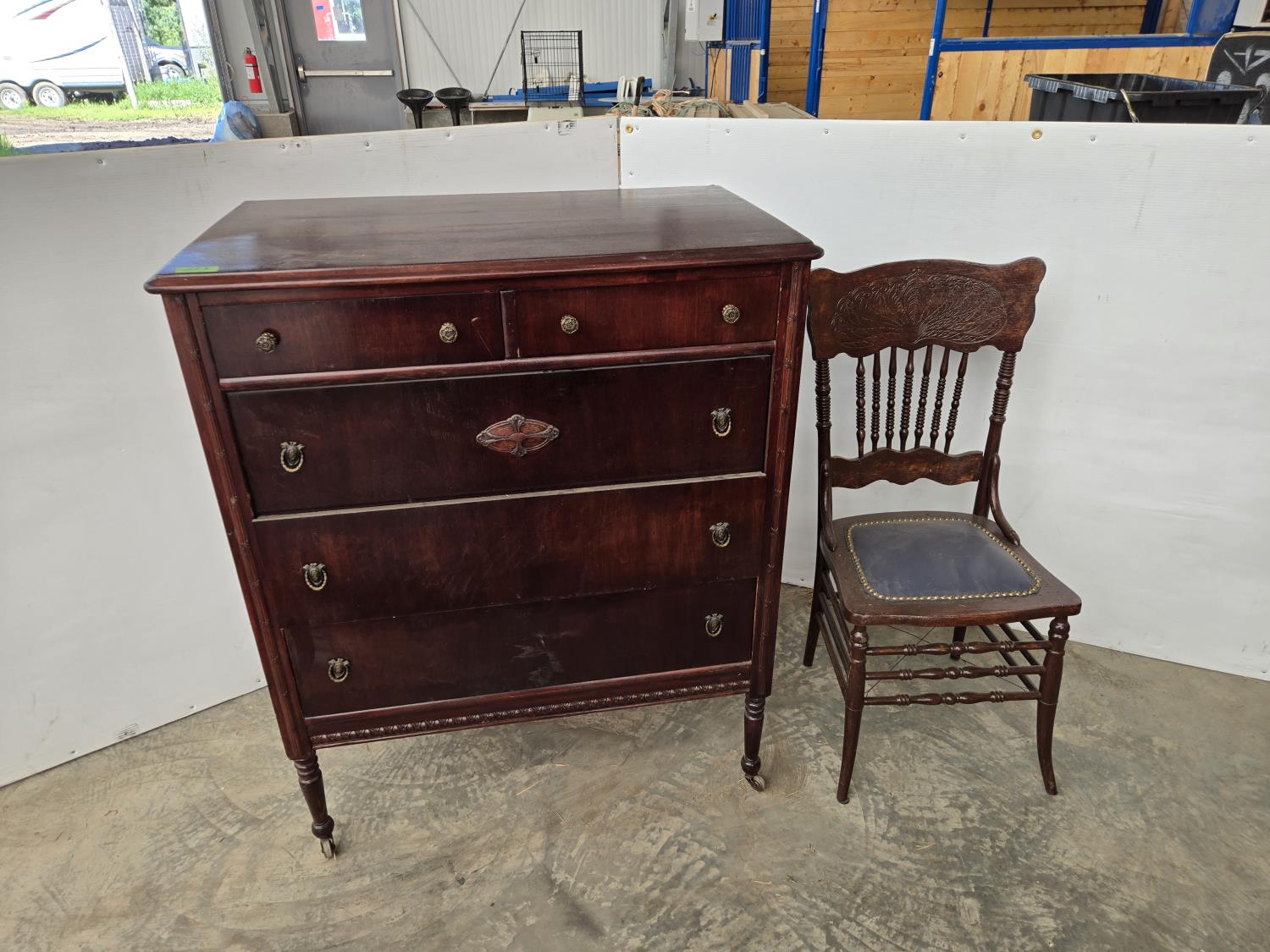 171 M.F. Beach 5 Drawer Dresser & Vintage Chair
