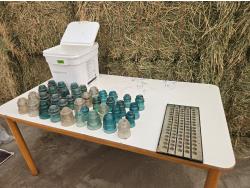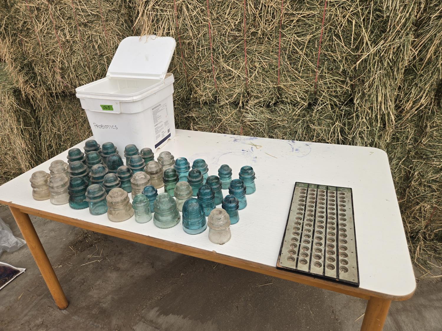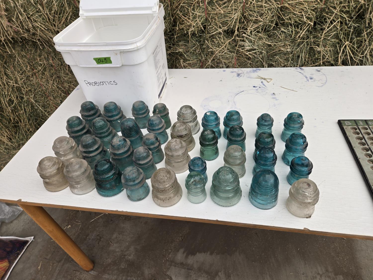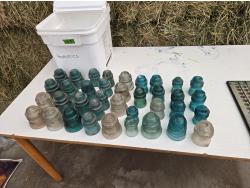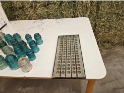 170 Qty of Glass Telephone Line Insulators & Vintage Bingo Board