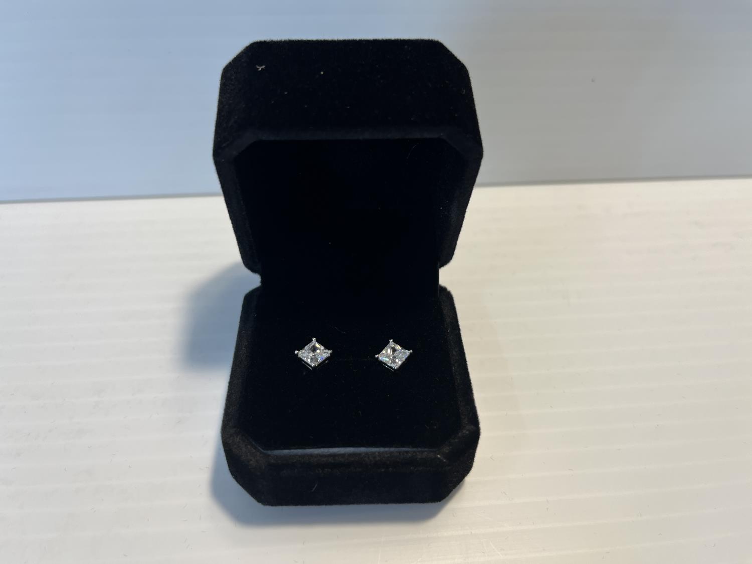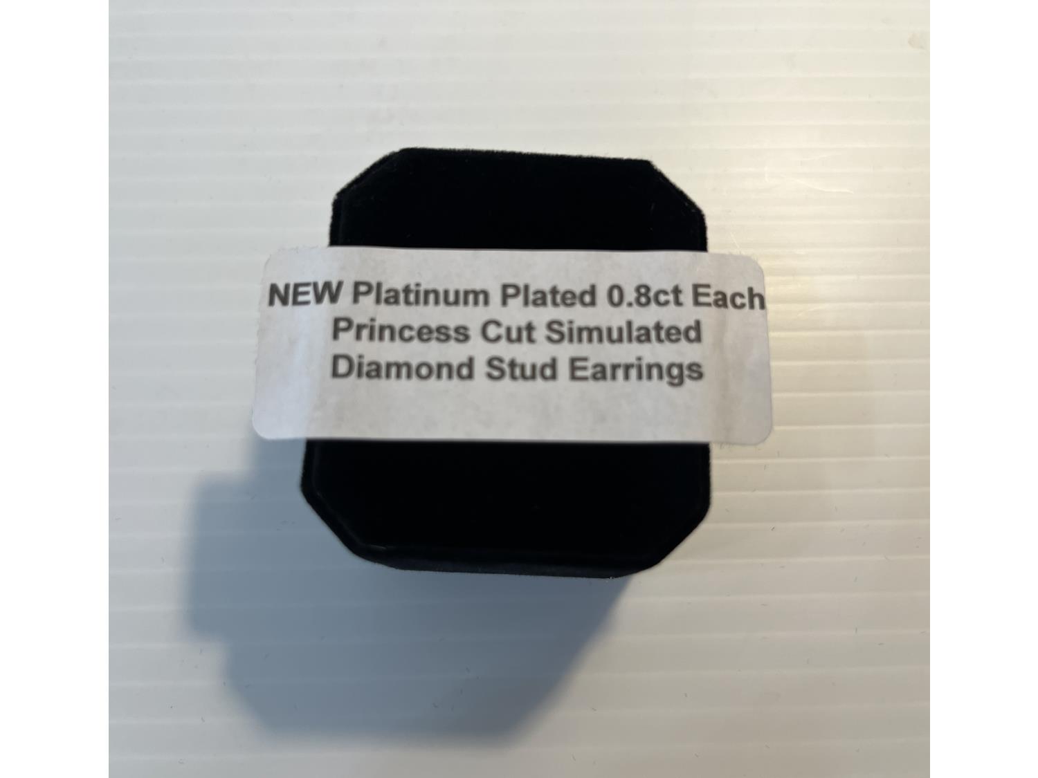 1309 0.8 Ct Princess Cut Simulated Diamond Stud Earrings (Unused)