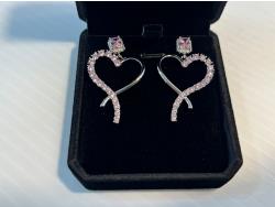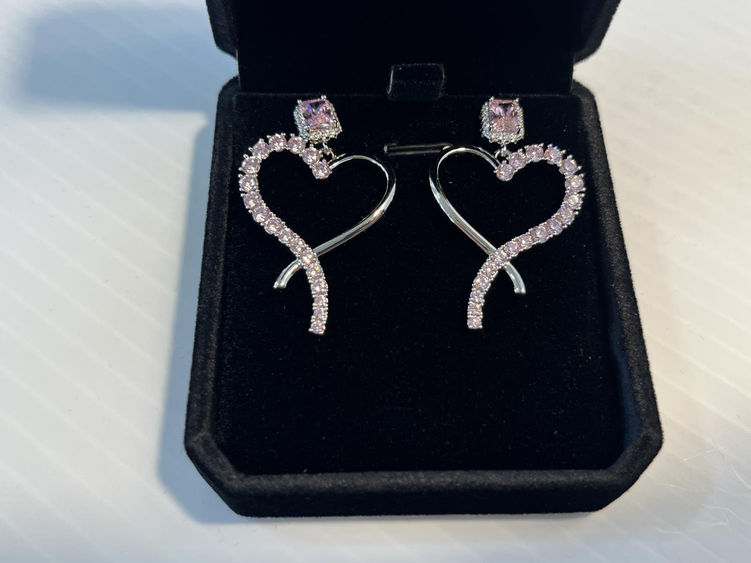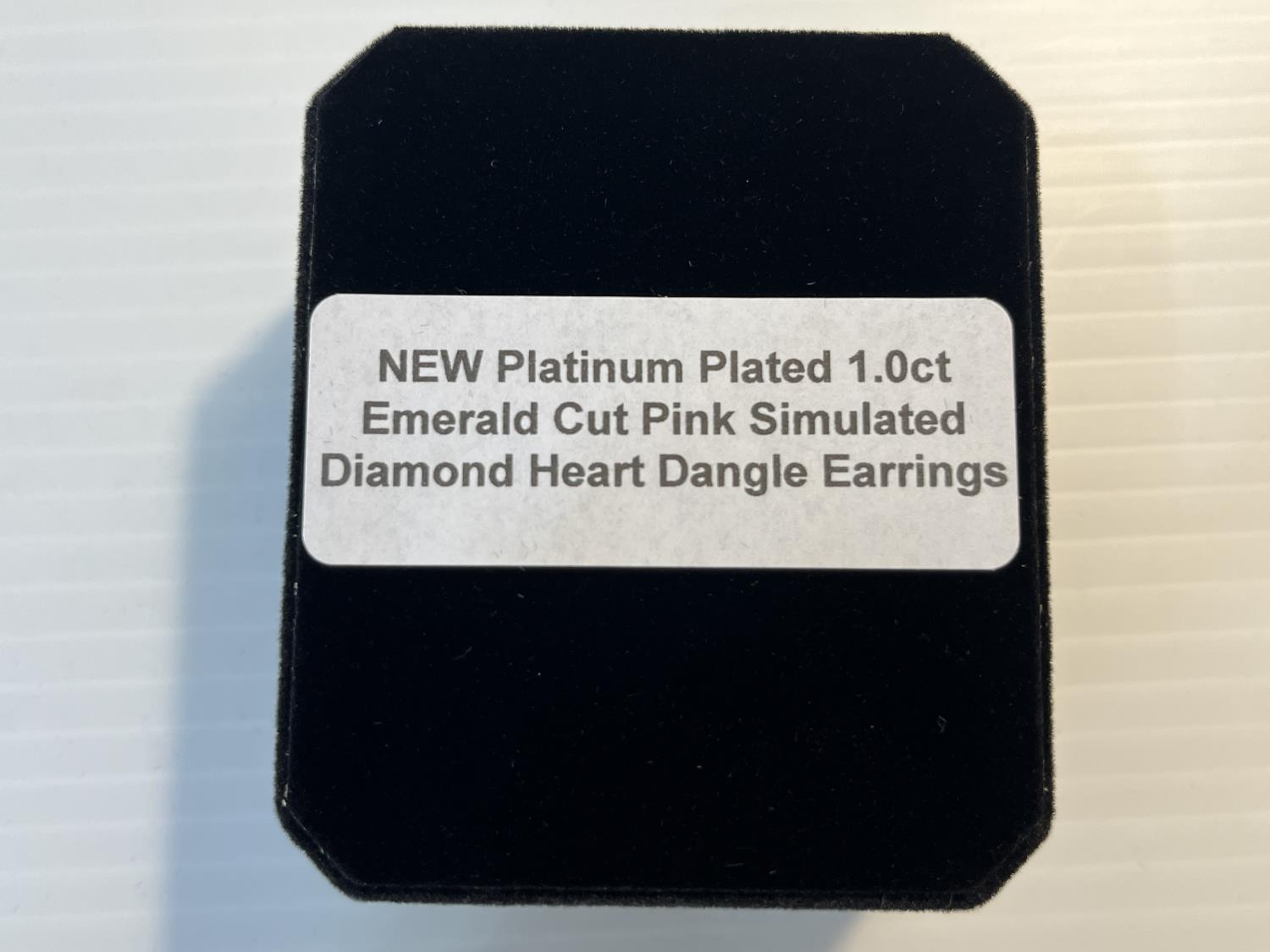 1311 1.0 Ct Pink Emerald Cut Simulated Diamond Heart Earrings (Unused)