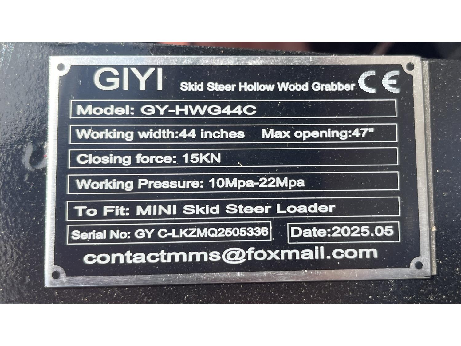 1607 GIYI HWG44C 44 Inch Hydraulic Hollow Wood Grapple Mini Skid Steer Attachment (Unused)