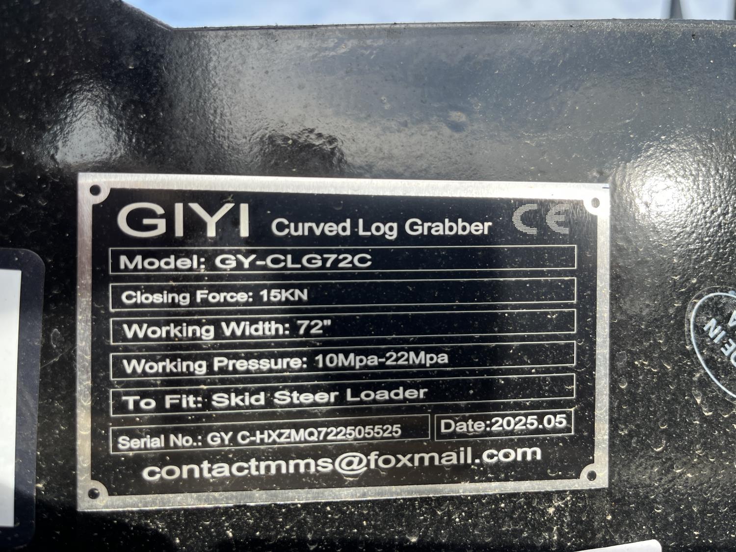 1546 GIYI CLG72C 72 Inch Hydraulic Grapple - Skid Steer Attachment (Unused)