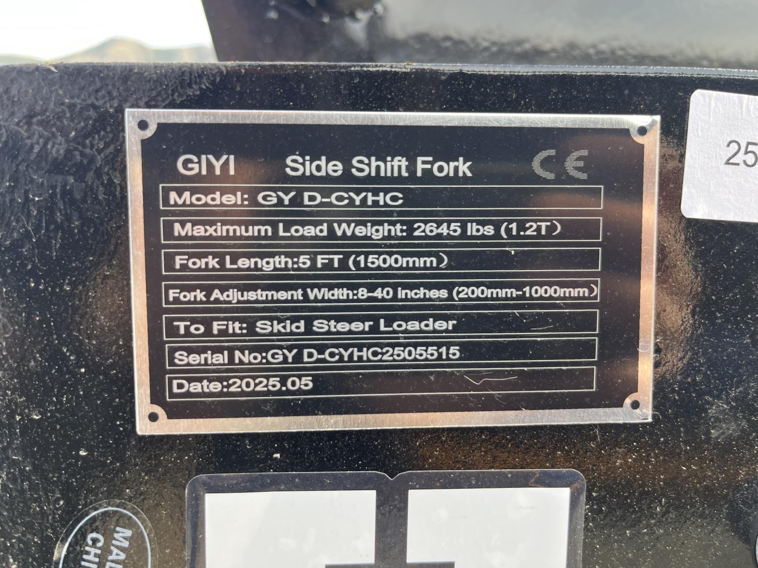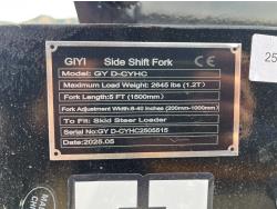 1594 GIYI Hydraulic Side Shift Pallet Forks - Skid Steer Attachment (Unused)