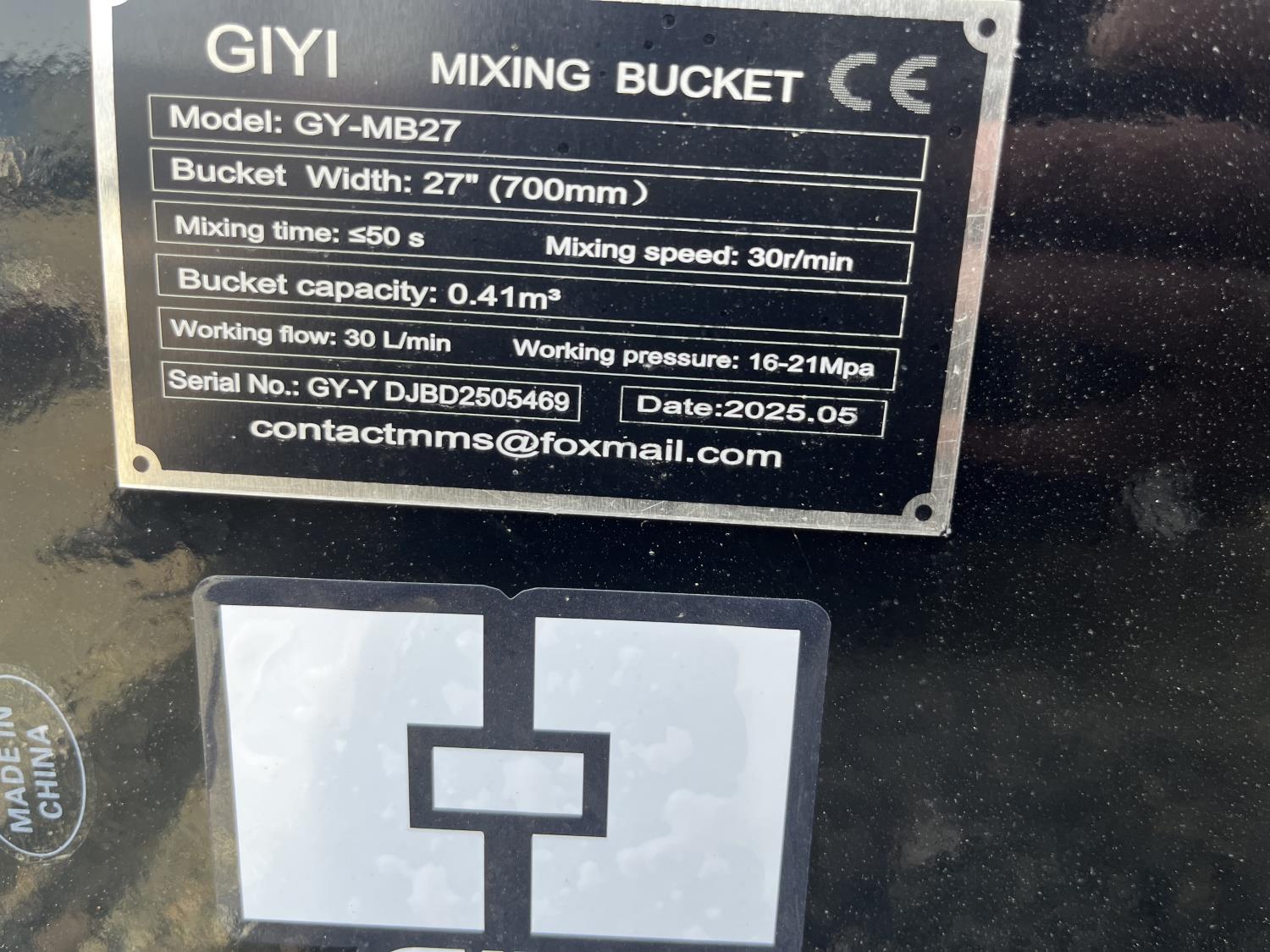 1552 GIYI MB27 27 Inch Hydraulic Mixing Bucket - Skid Steer Attachment (Unused)
