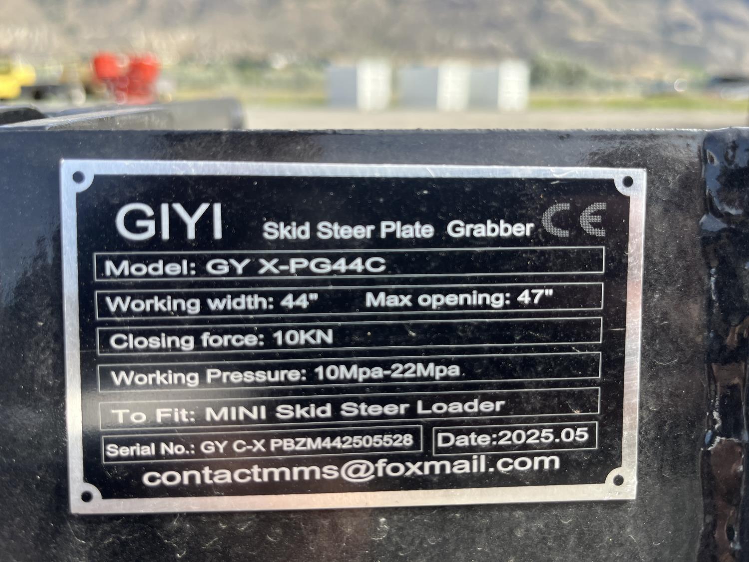1604 GIYI PG44C 44 Inch Hydraulic Plate Grabber - Mini Skid Steer Attachment (Unused)