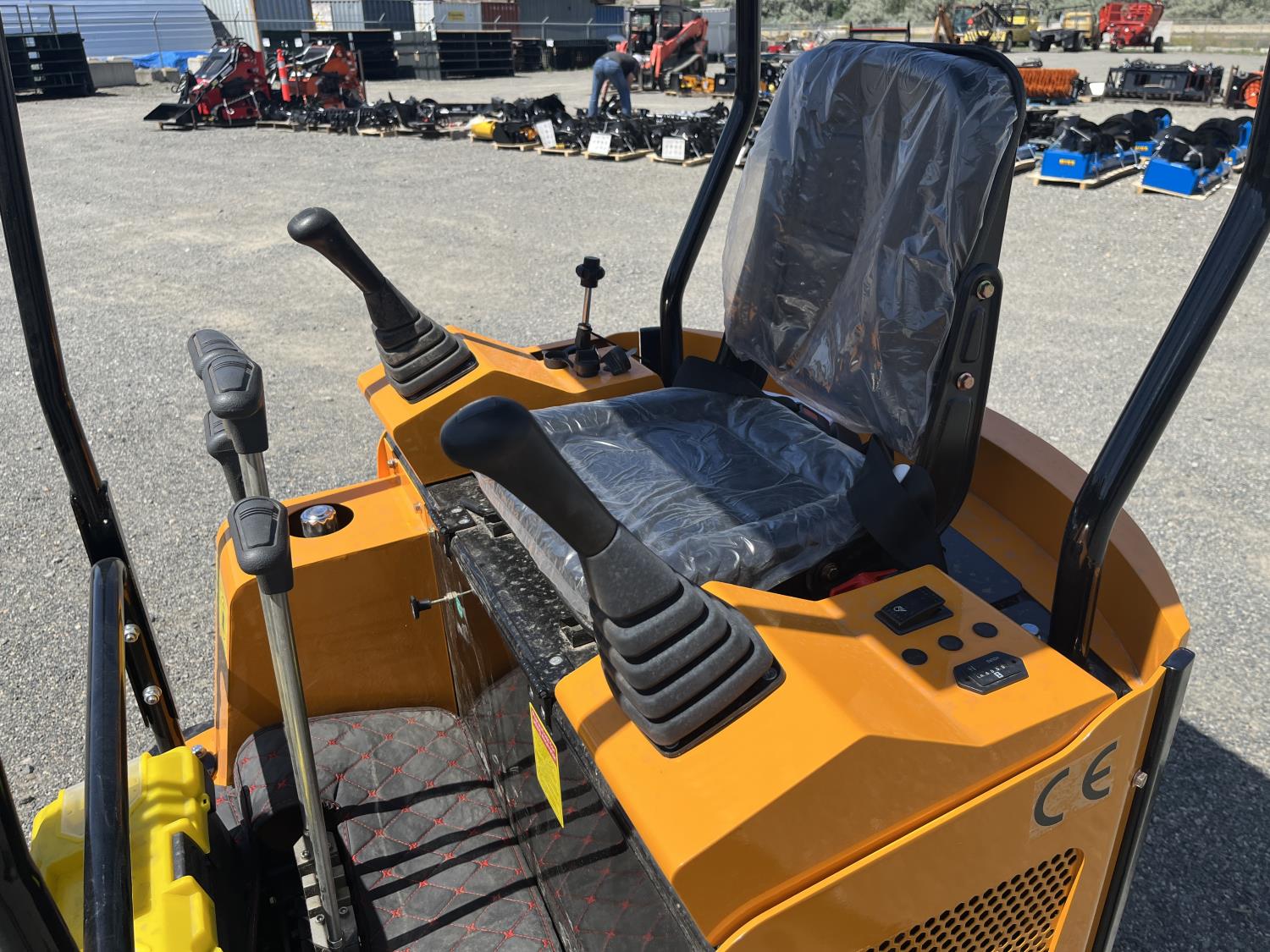 Open station, gas engine, 16 inch dig bucket, manual thumb, backfill blade, 7 inch rubber tracks