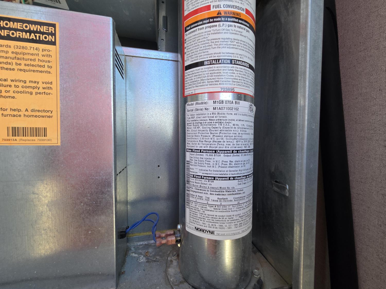 40 amp electrical service, single phase, 70,000 BTU furnace, #6