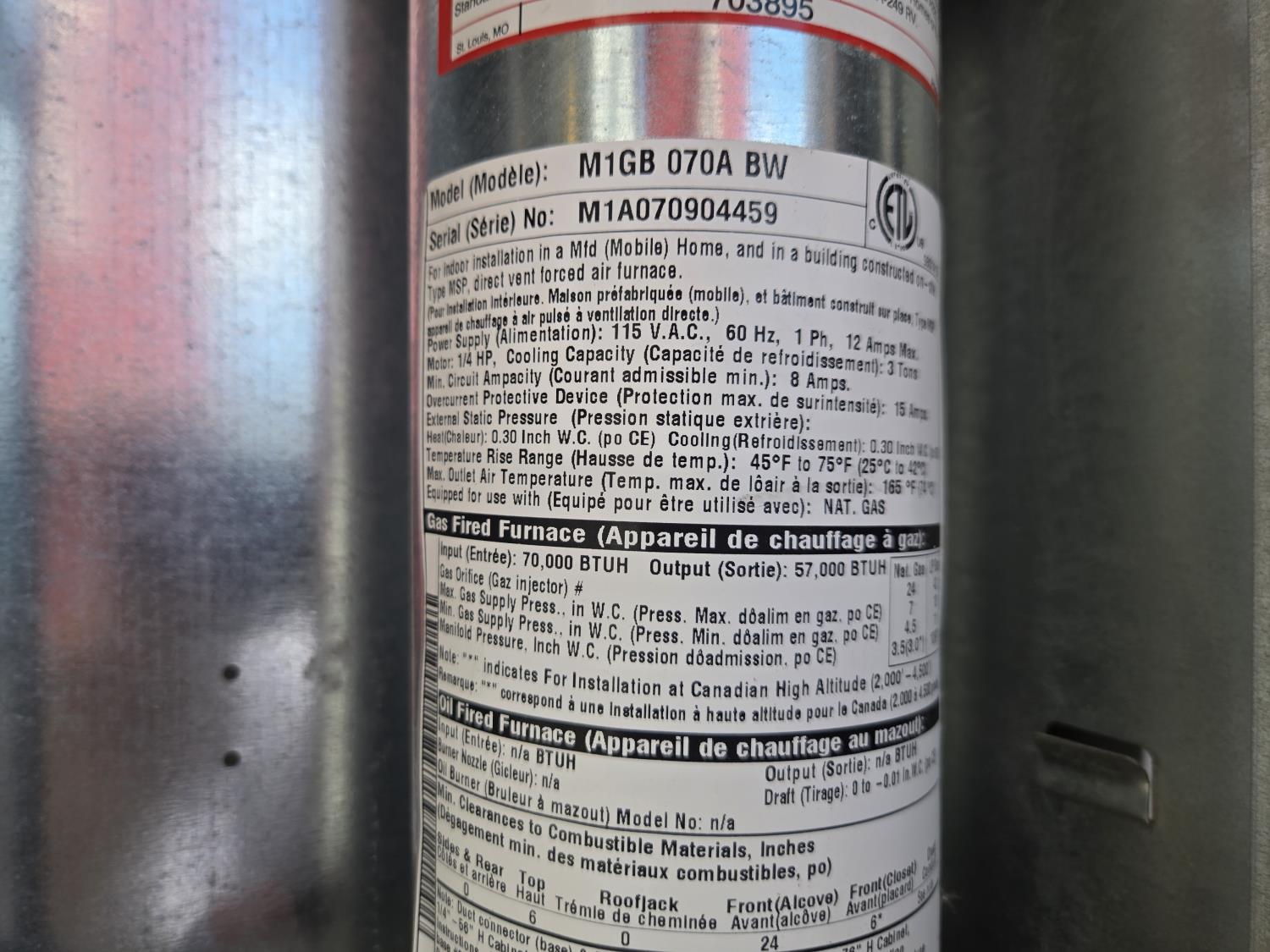 40 amp electrical service, single phase, 70,0000 btu furnace, #8