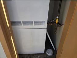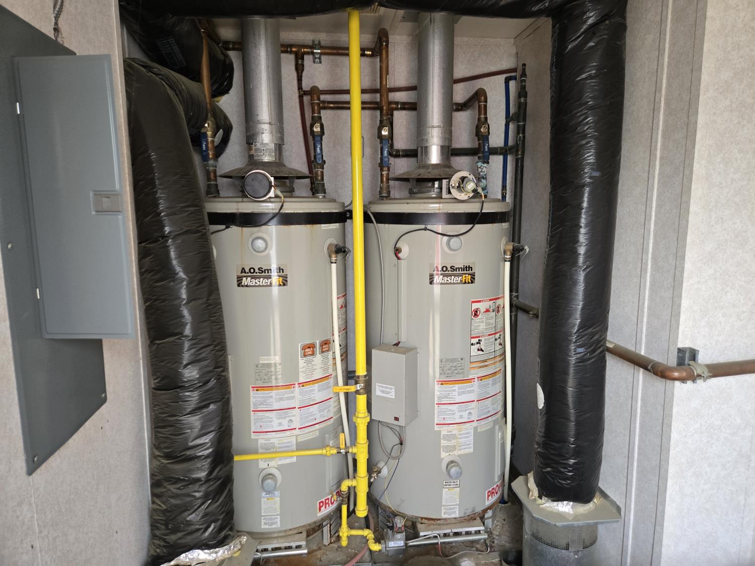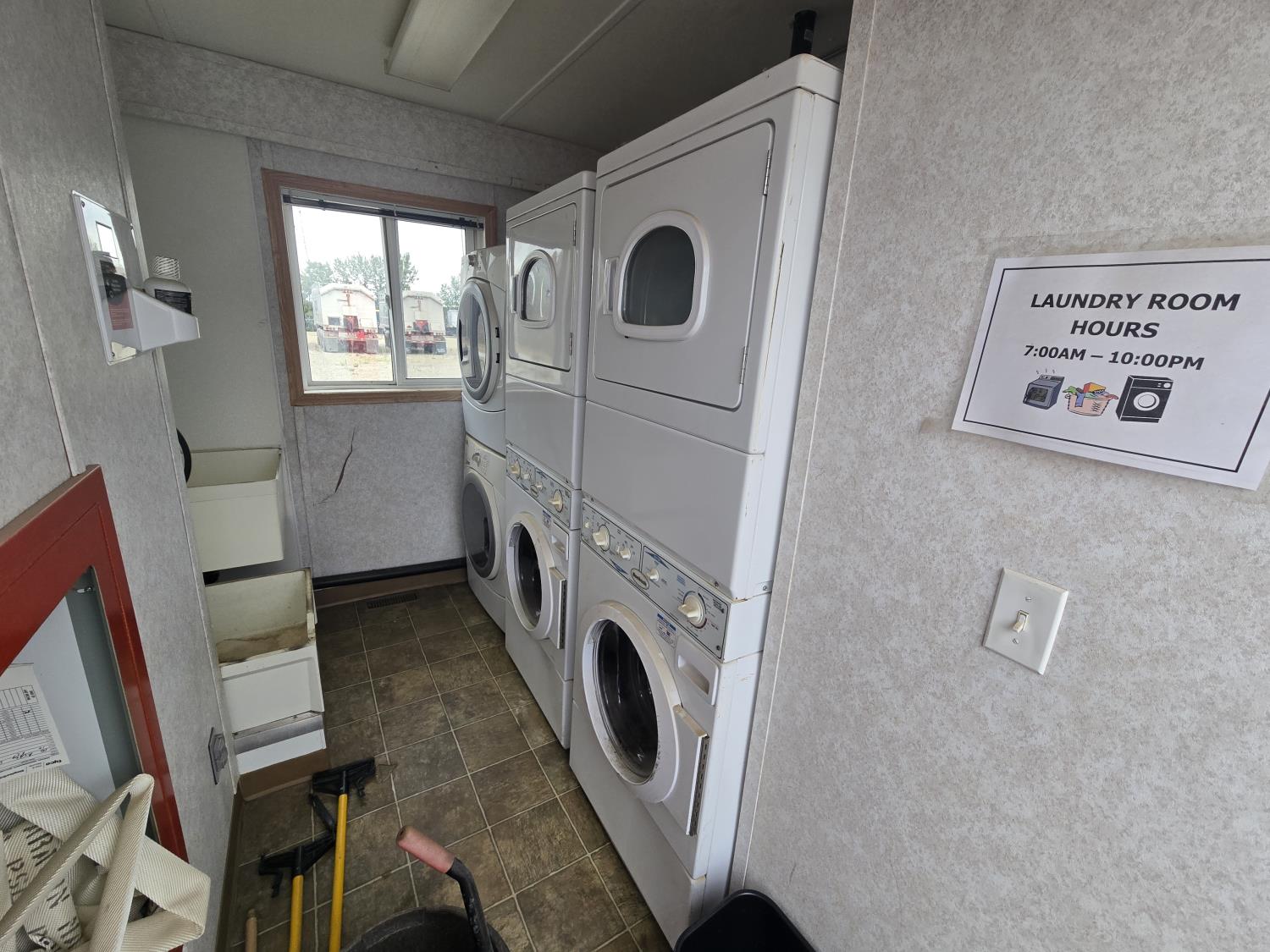 200 amp electrical service, 120/240 volt, single phase, furnace, #3, (8) private bathrooms, (1) bathroom with (3) sinks, (2) urinals, (1) toilet, laundry room with washers and dryers