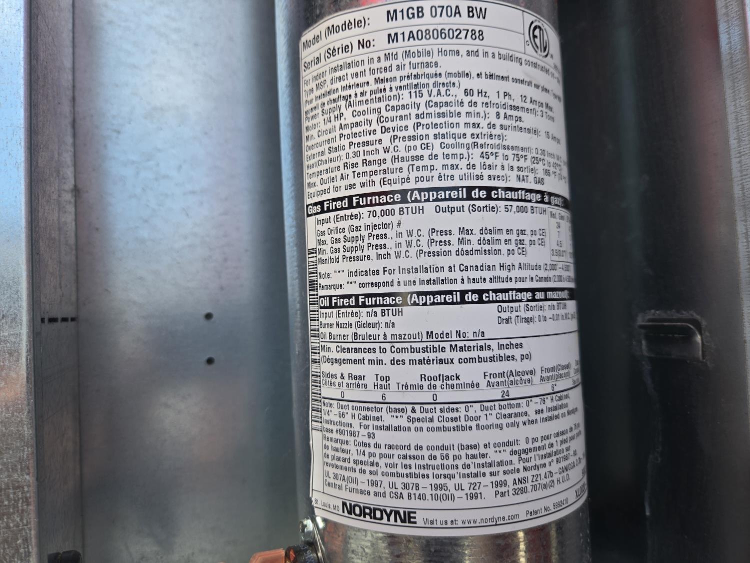 60 amp electrical service, single phase, 70,000 BTU furnace
