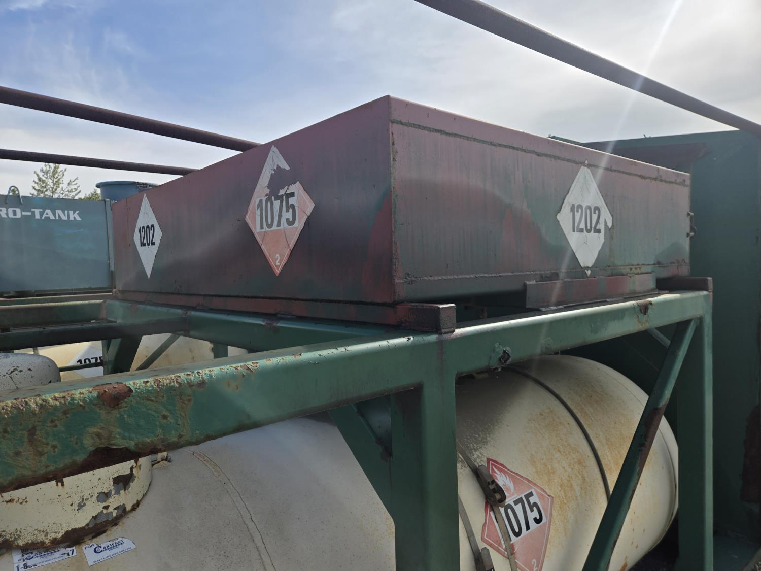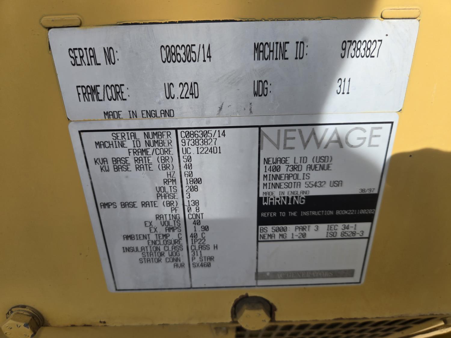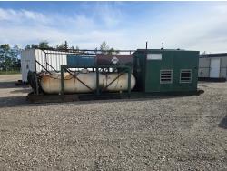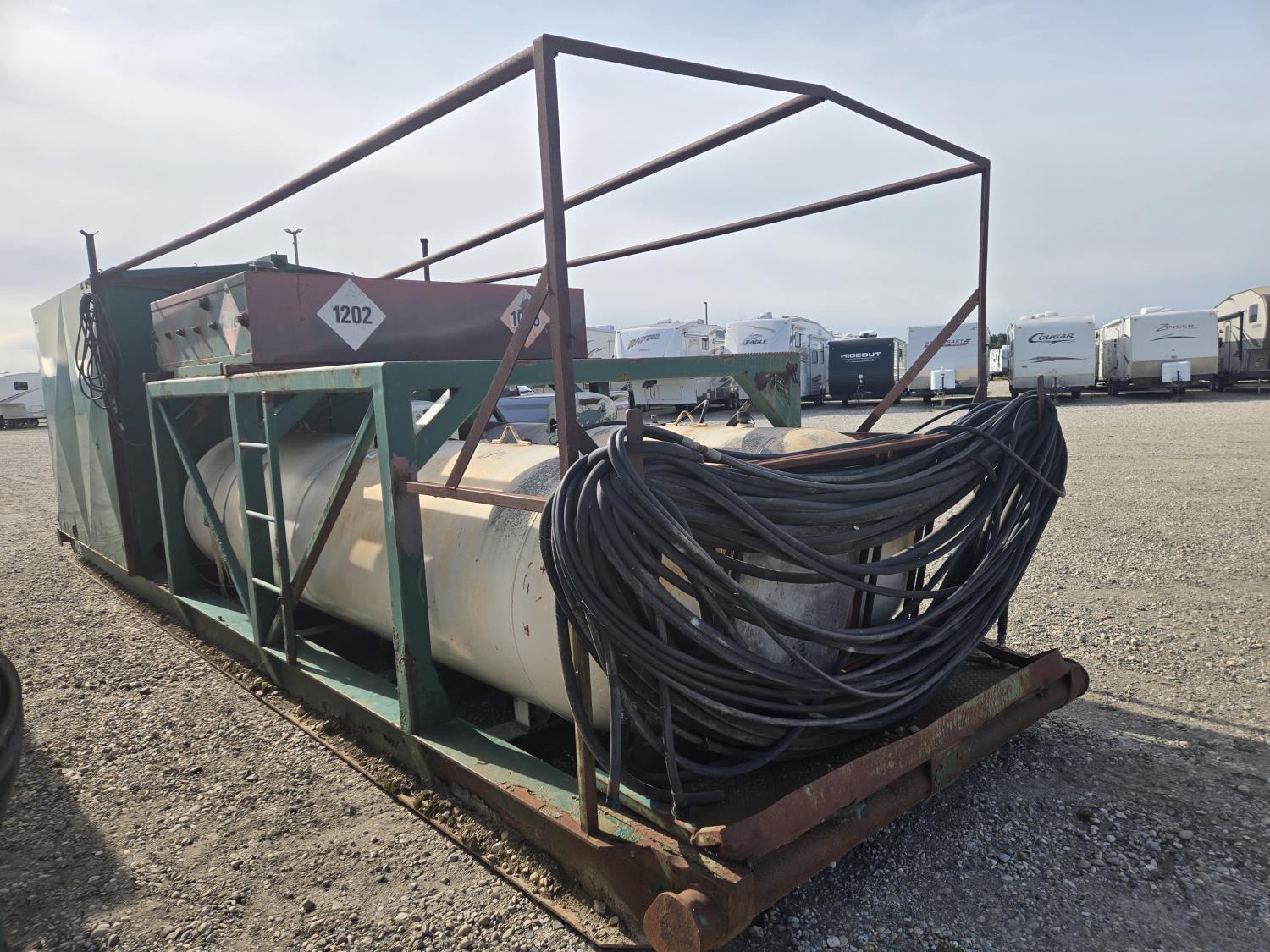 on 8 ft X 30 ft skid, (1) Newage 50 KVA, 40 KW generator with 4 cylinder John Deere diesel engine, (1) Newage 75KVA, 60 KW generator with 4 cylinder John Deere diesel engine, both generators 208 volt 3 phase, diesel fuel tank, (2) empty 1000 gallon propane tanks, qty of propane hose, wiring is not hooked up from generators to electrical panels