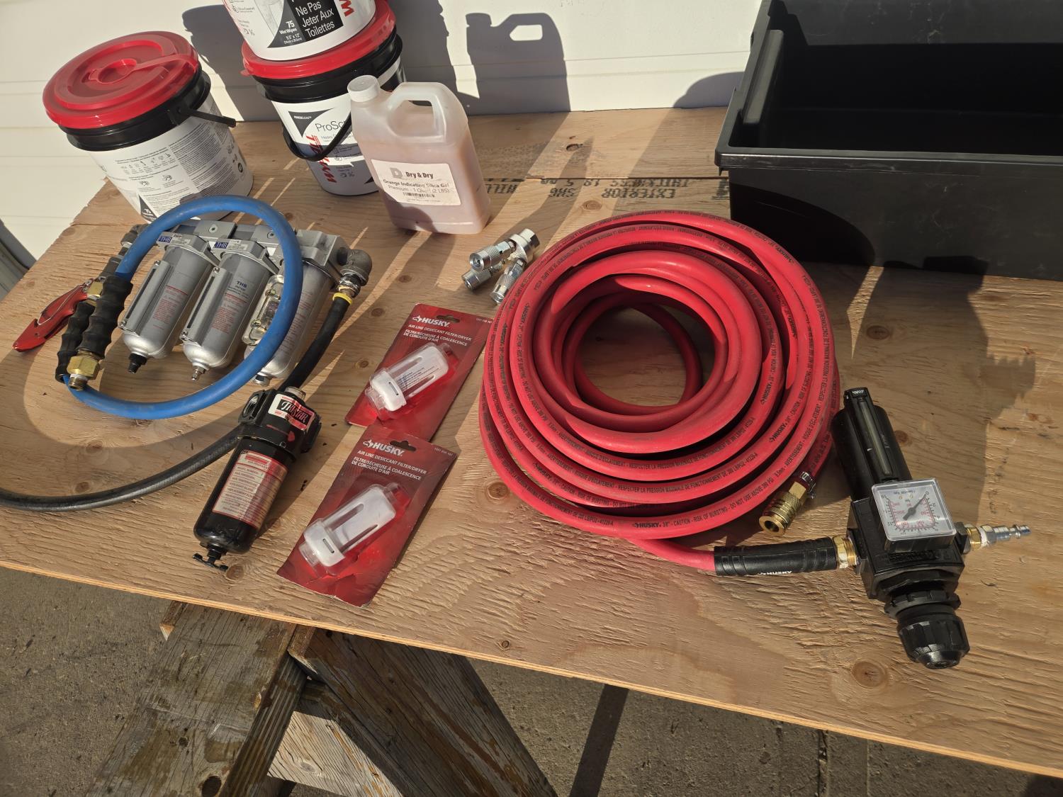 5167 (1) Air Hose, Air Line Accessories, (3) Containers of Wet Towels