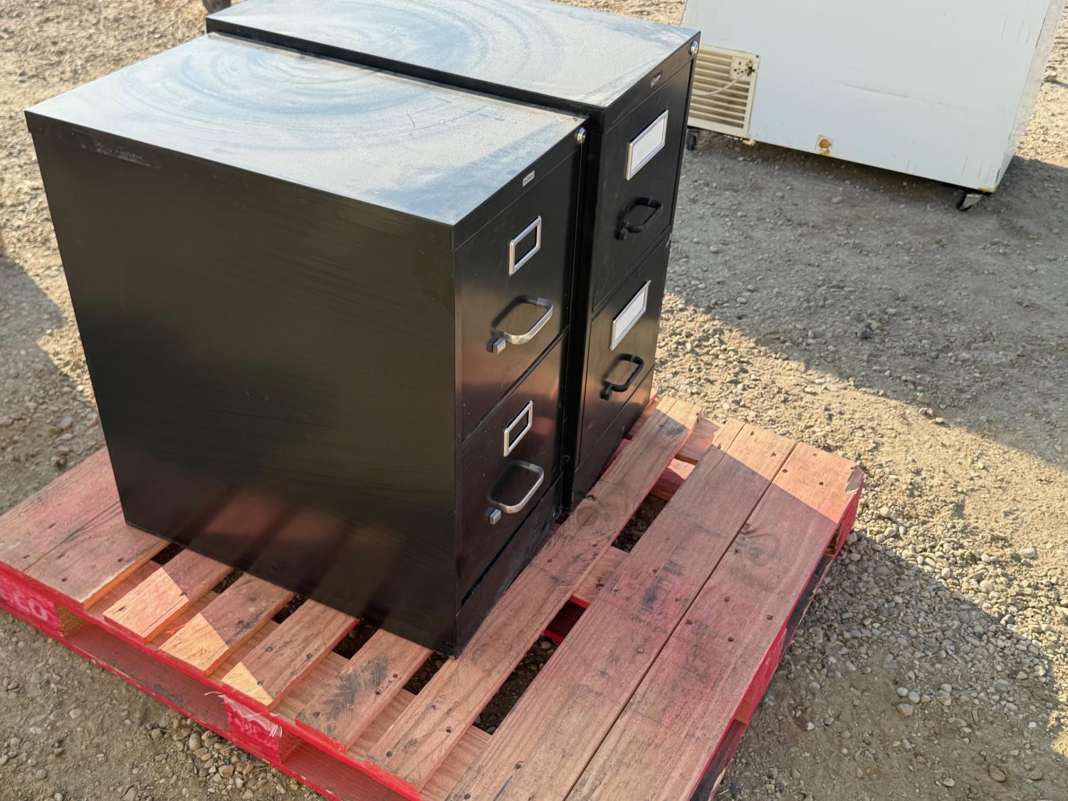 Two 2-drawer file cabinets. 15 inch wide x 27 inch deep x 29 inch tall (no keys)