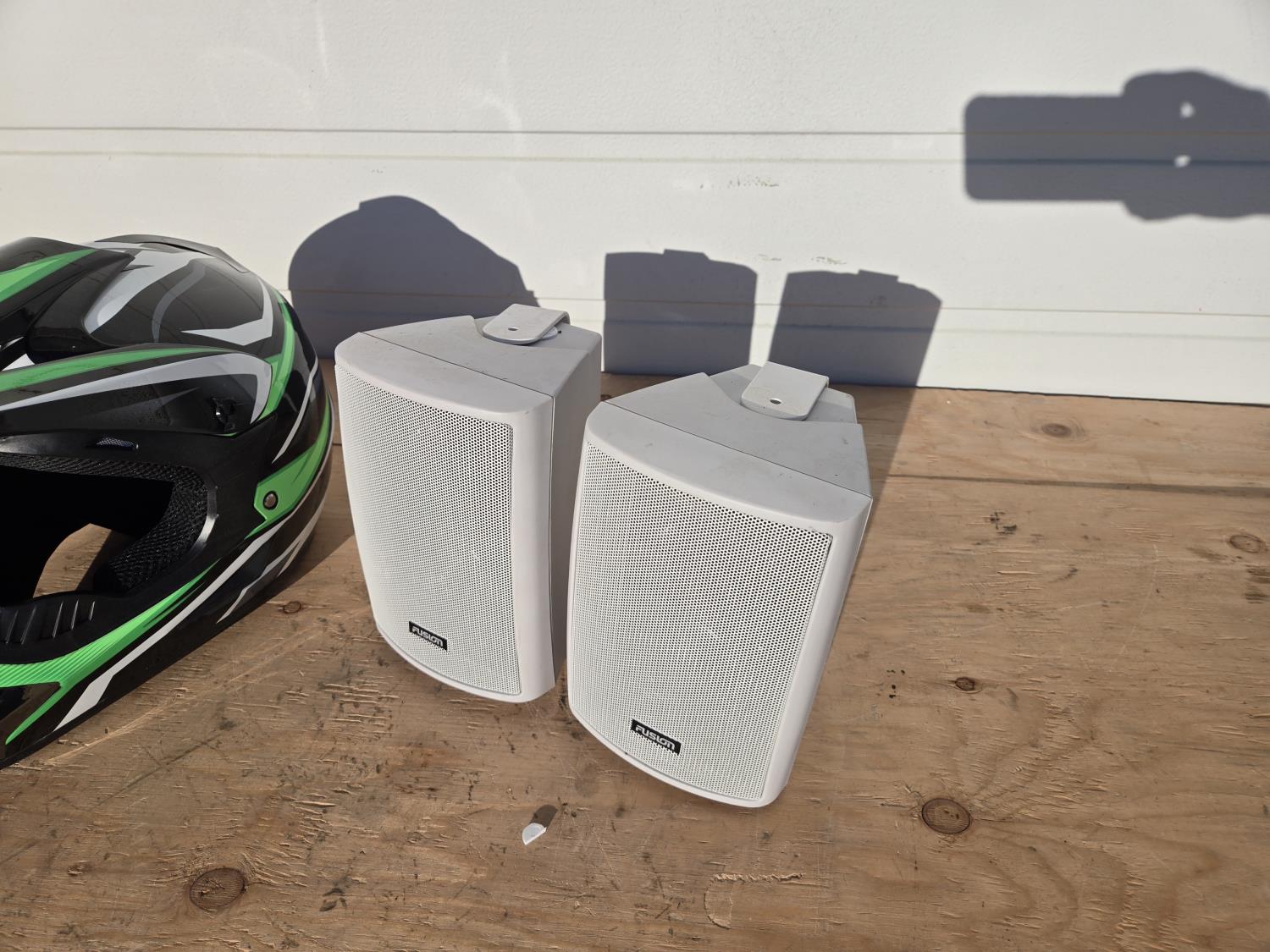 5247 (2) Small Helmets, (2) Fusion Speakers