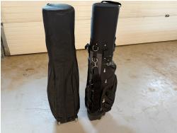 Pair of soft shell wheeled golf club travel bags. Approximately 49 inch tall