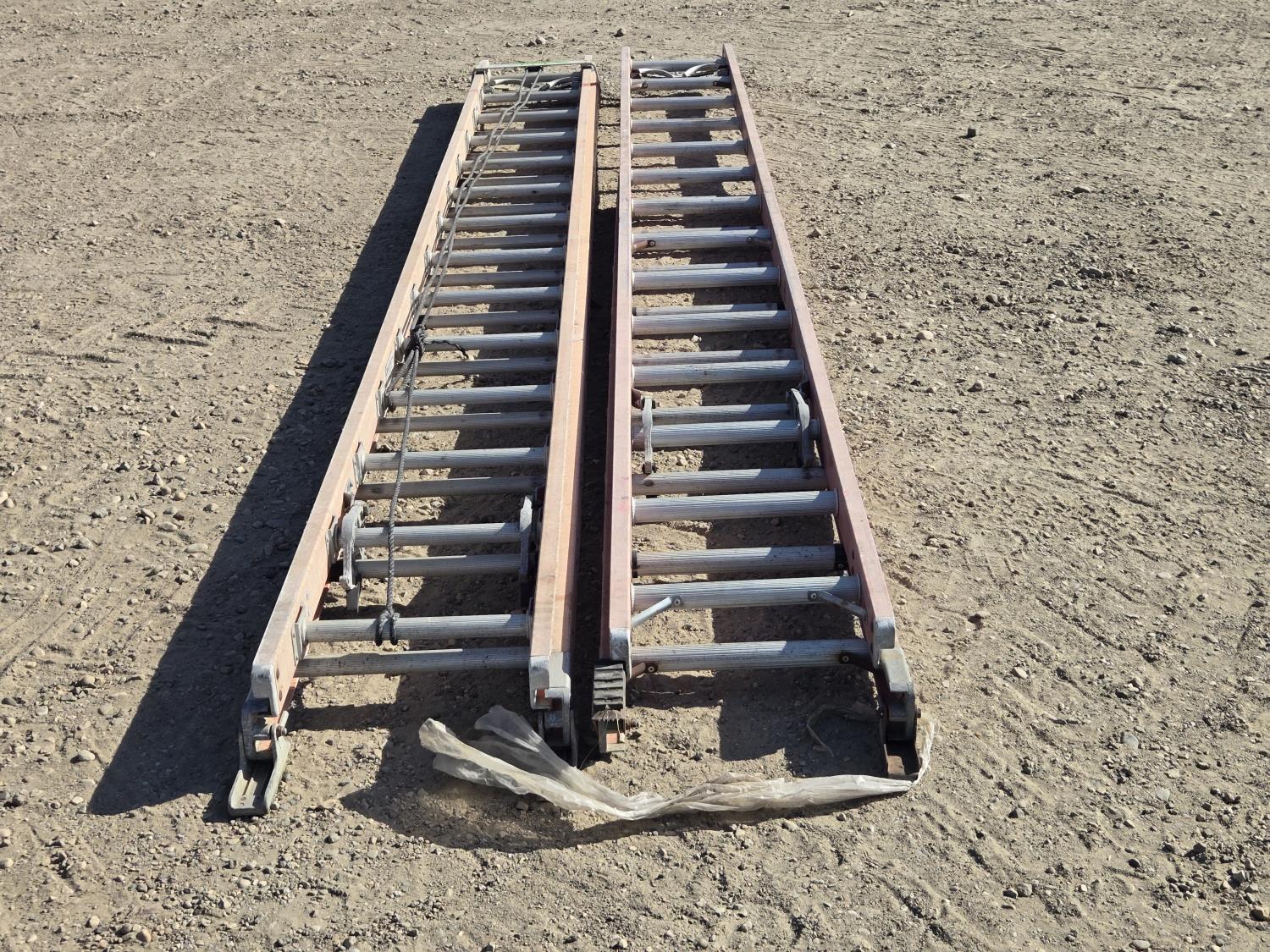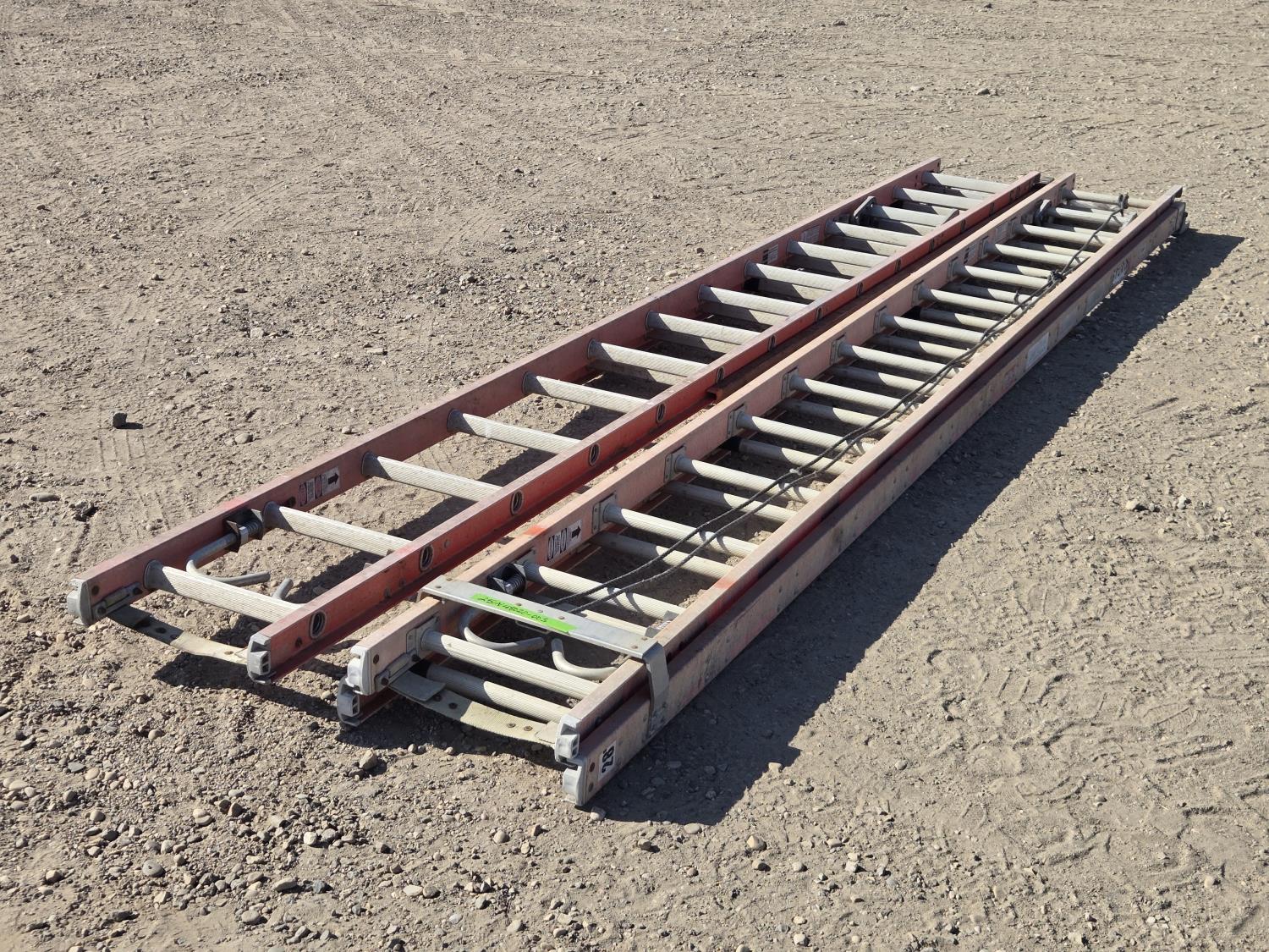 5581 (2) Sturdy 28 Ft Fiberglass Extension Ladders