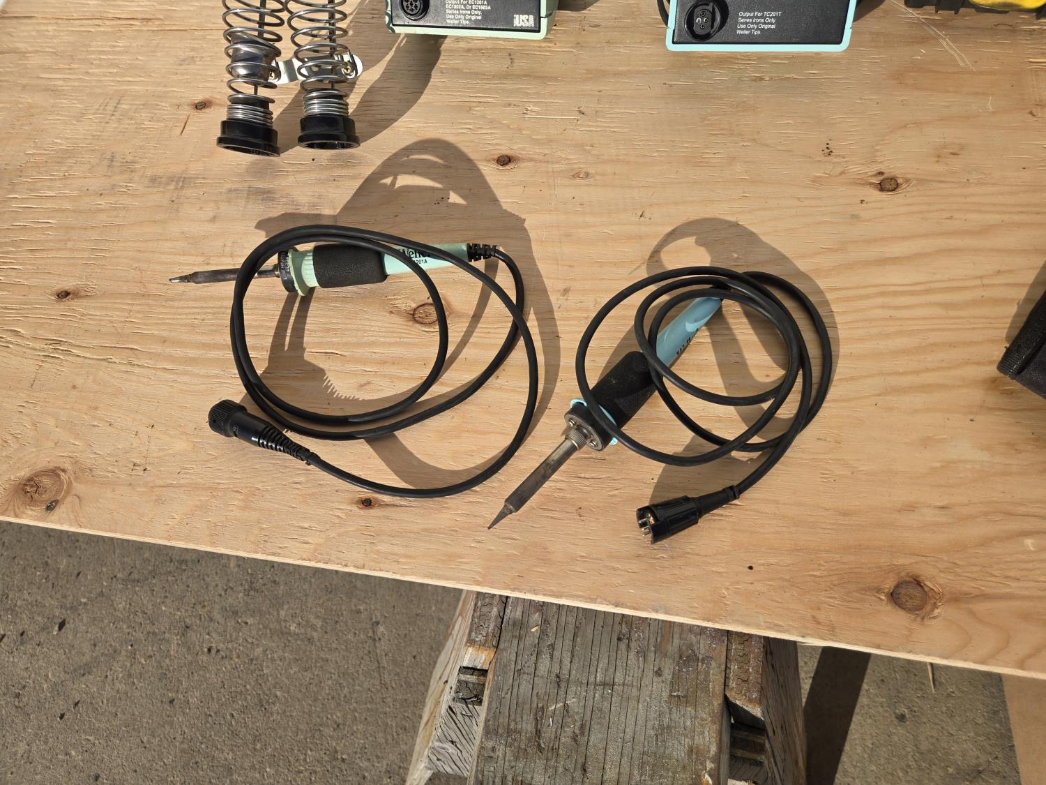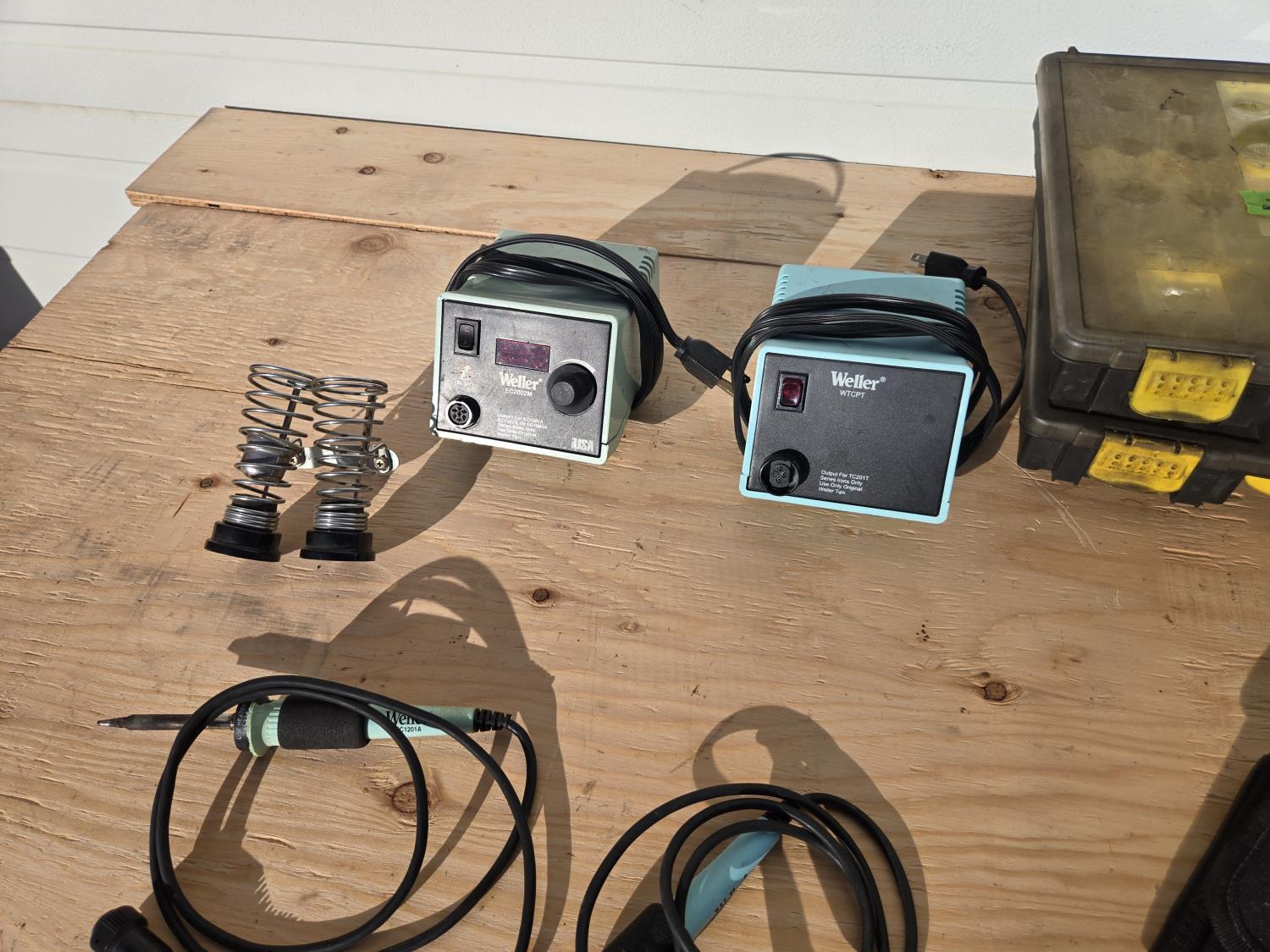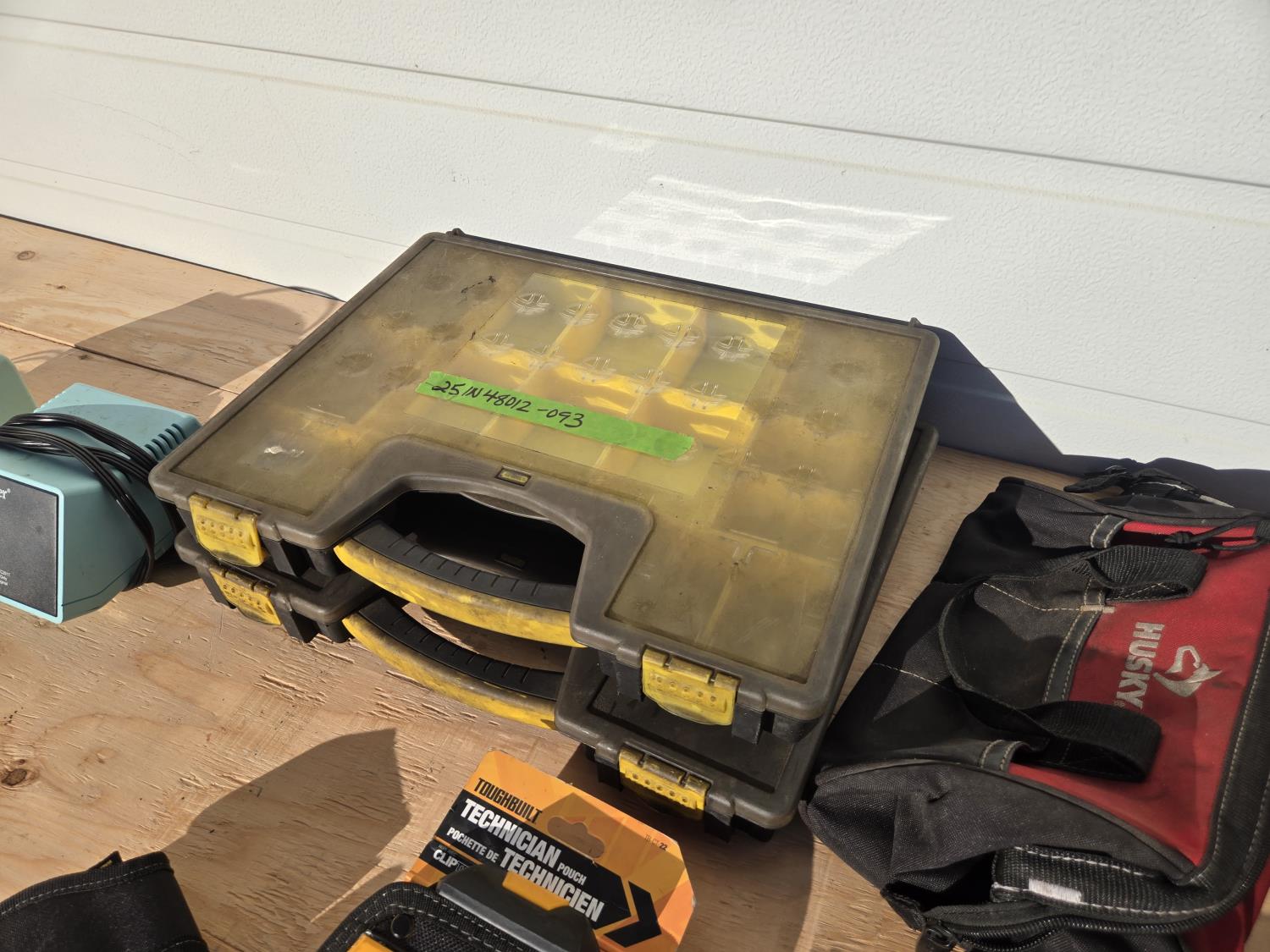 5633 (2) Weller Soldering Irons, (3) Husky Tool Bags, (2) Stanley Parts Trays