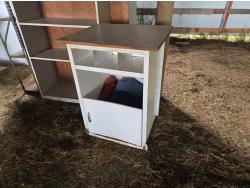 5756 (3) Shelf Units & (1) Cabinet with Qty of Coveralls