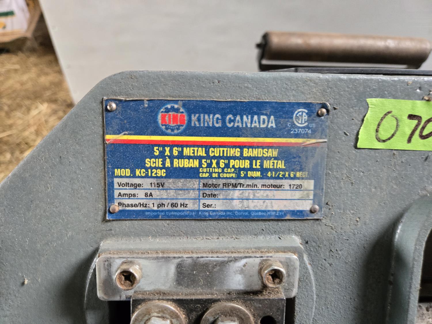 5755 King Canada 5 Inch X 6 Inch Metal Cutting Band Saw & Adjustable Roller Stand