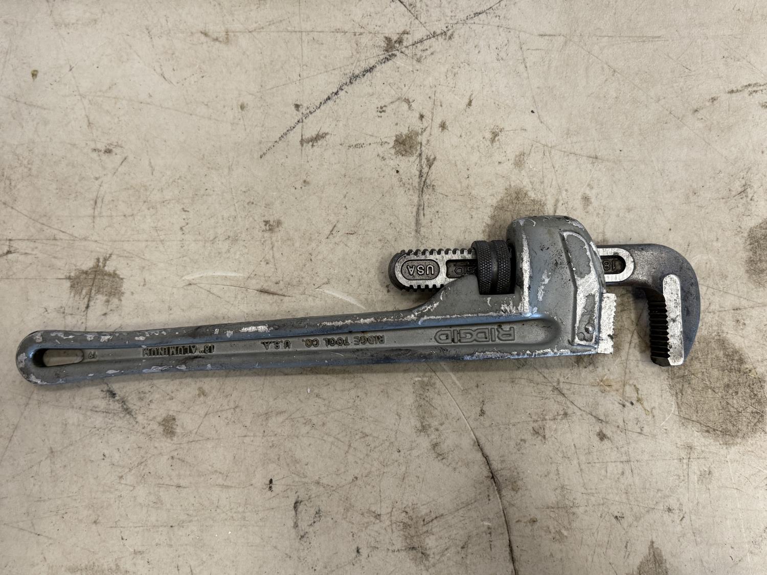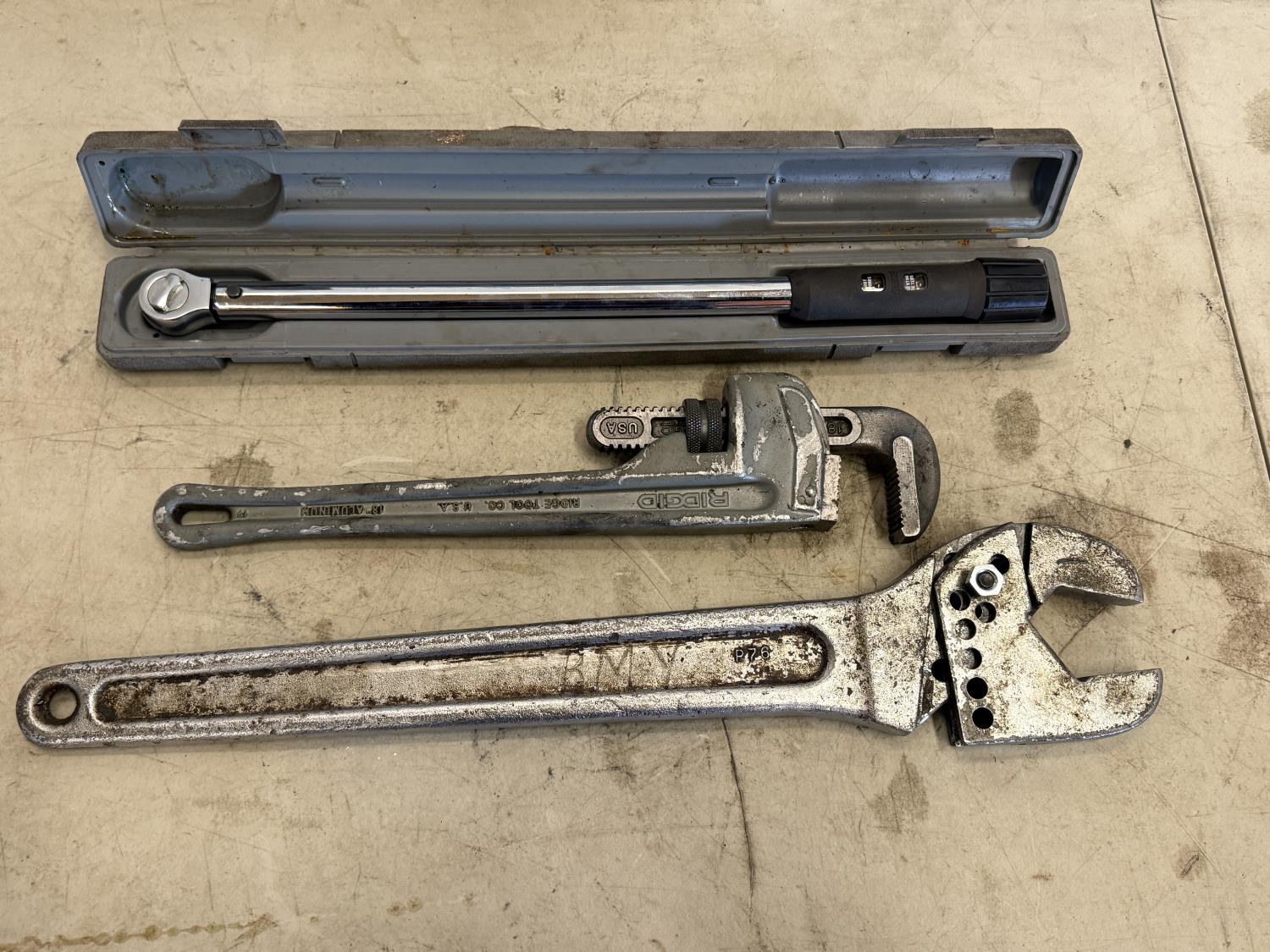 18 inch Rigid pipe wrench, OTC adjustable wrench and a McMaster Carr 1/2 inch torque wrench
