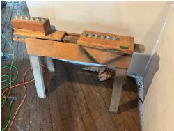 1 HP, 11 amp, 240 volt single phase, metal stand, saw horse with rollers, extra blades
