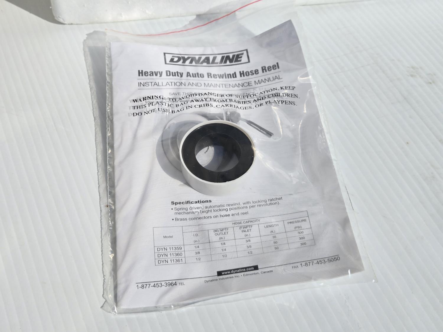 5380 Dynaline Heavy Duty Auto Rewind Air Hose Reel with Air Hose (Unused)
