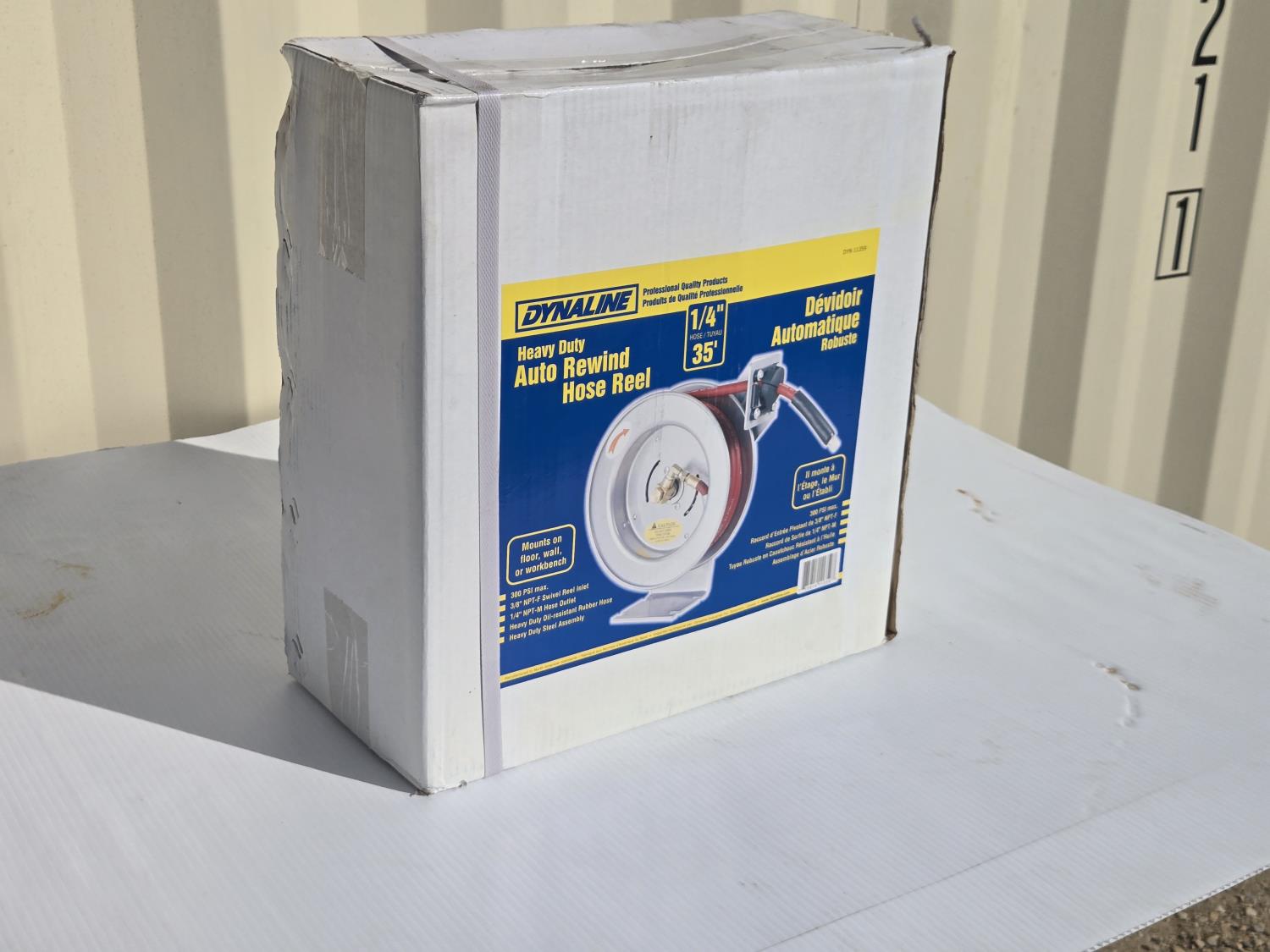 5381 Dynaline Heavy Duty Auto Rewind Air Hose Reel with Air Hose (Unused)