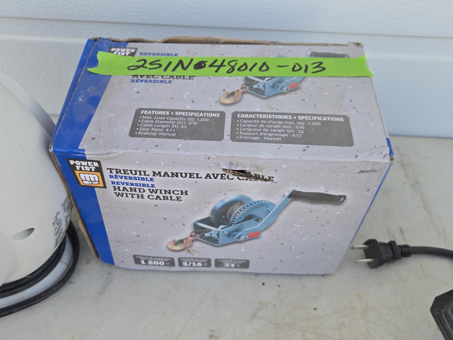 5300 Qty of 42 Inch Railing Pickets, Heater, Dremel Saw, Hand Winch, Concrete Drill Bits