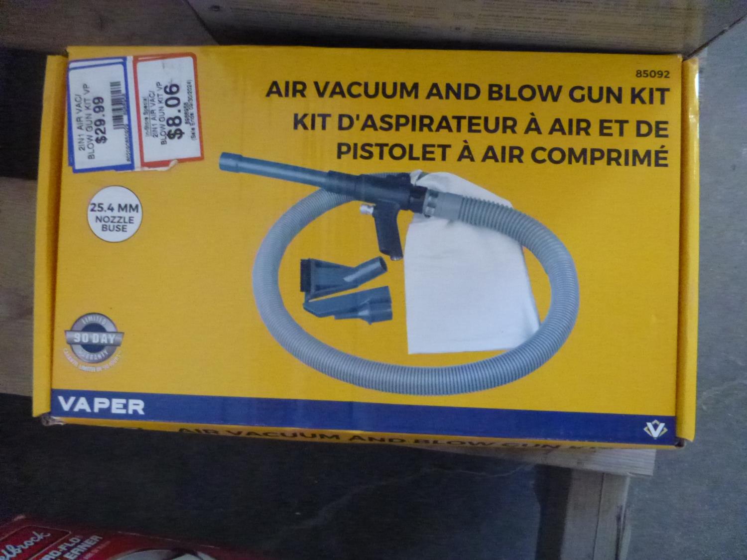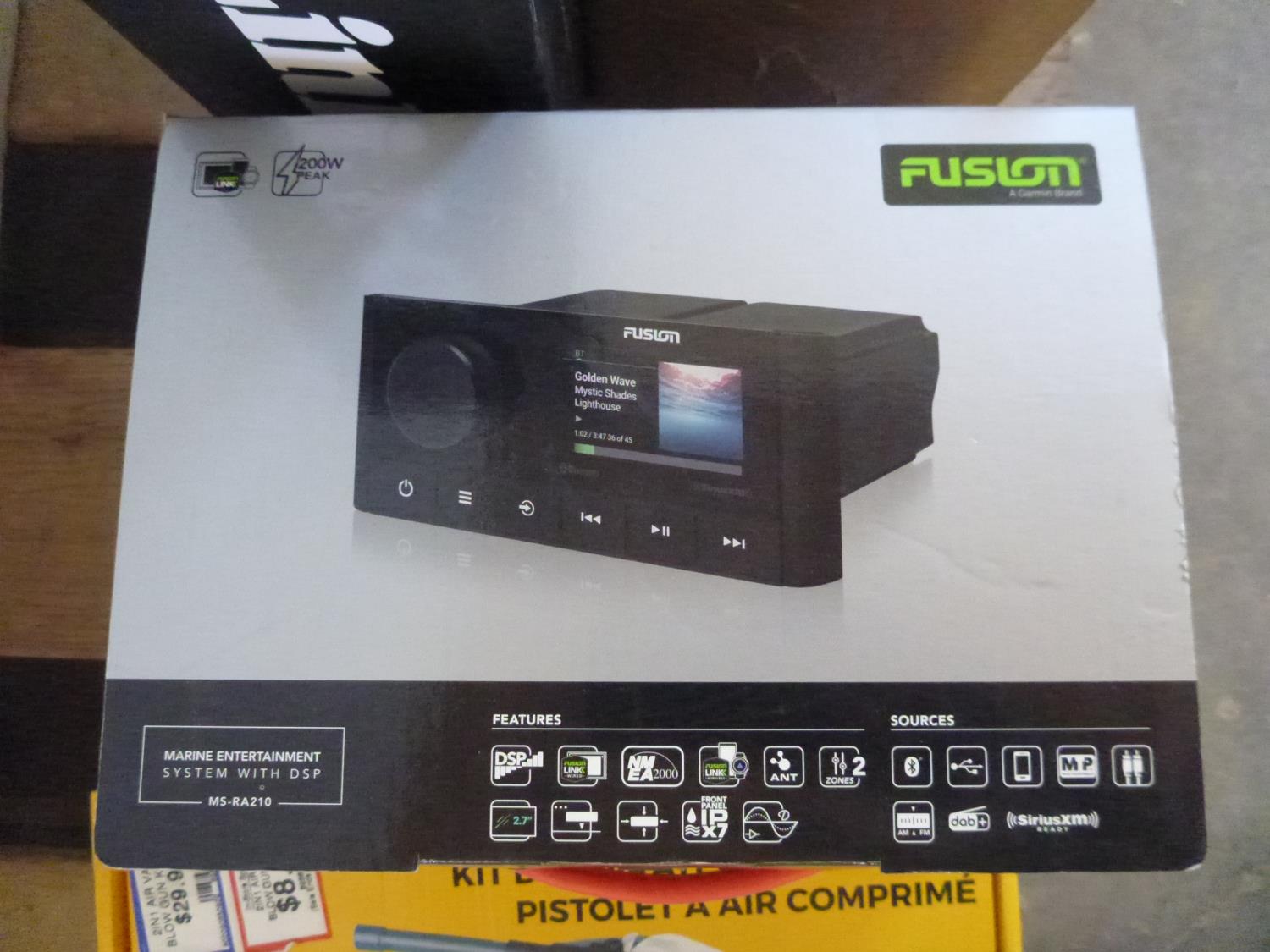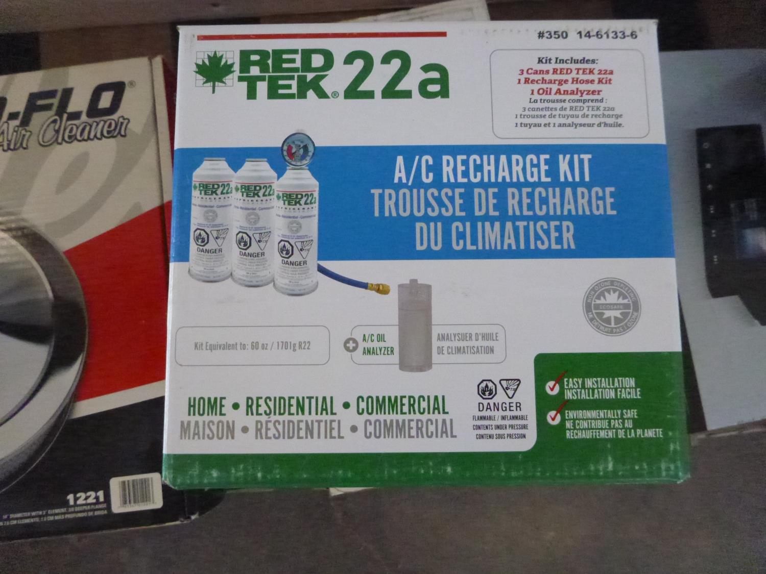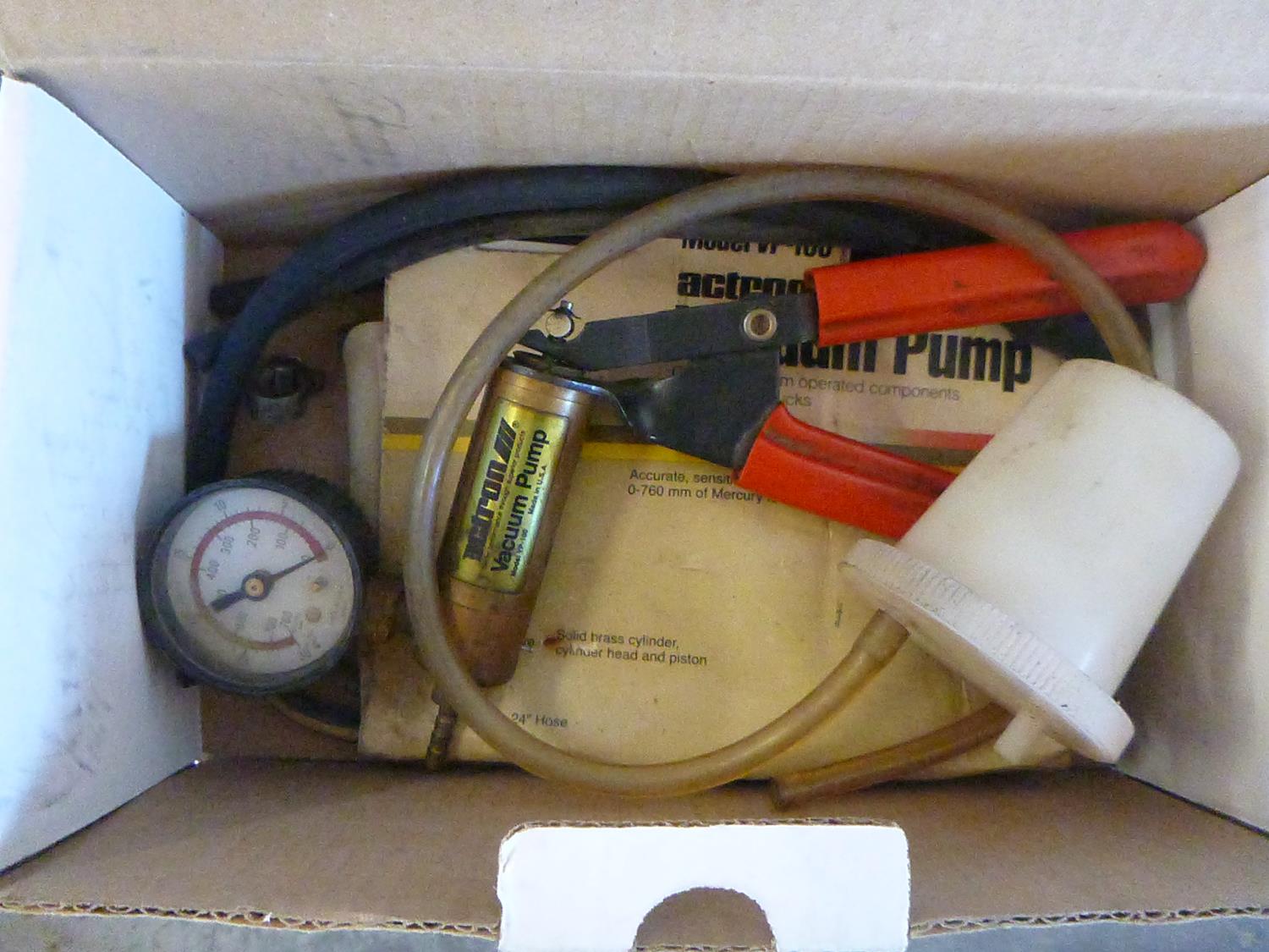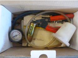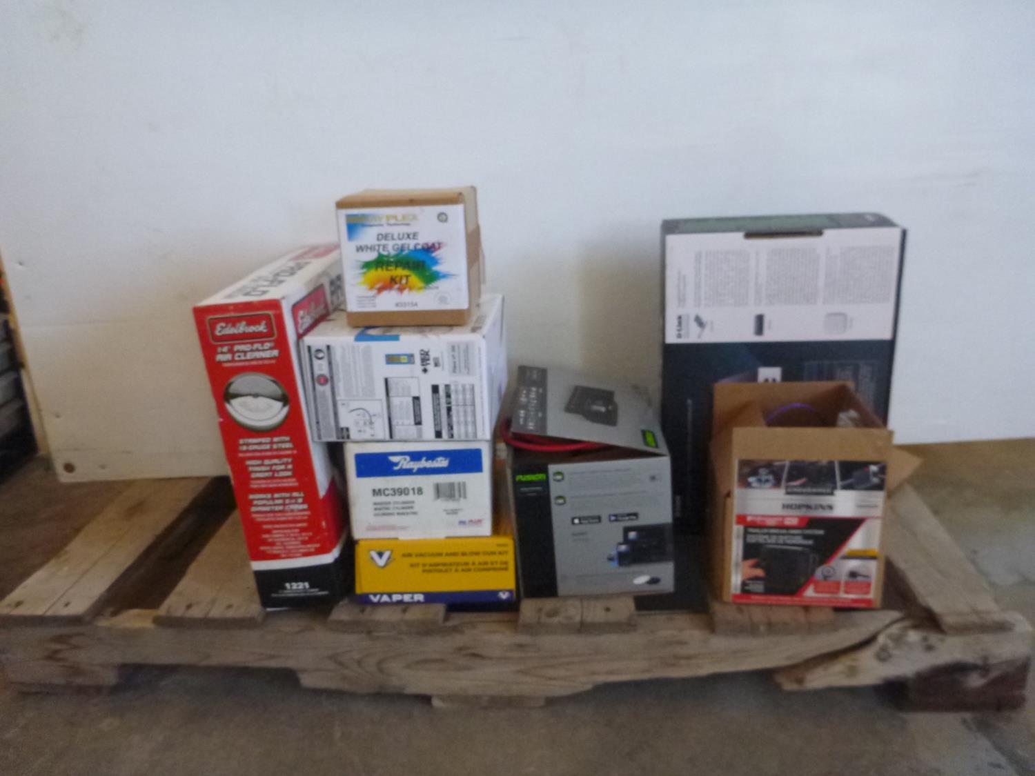 Edebrock air filter, vacuum pump, blow gun kit, white glecoat repair kit, ac recharge kit, fusion radio, d-link switch, trailer brake-away kit