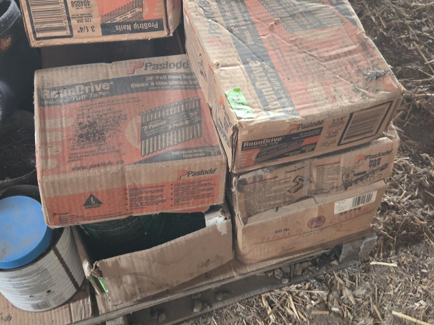 framing nailer, joist hangers, screws, nails, miscellaneous