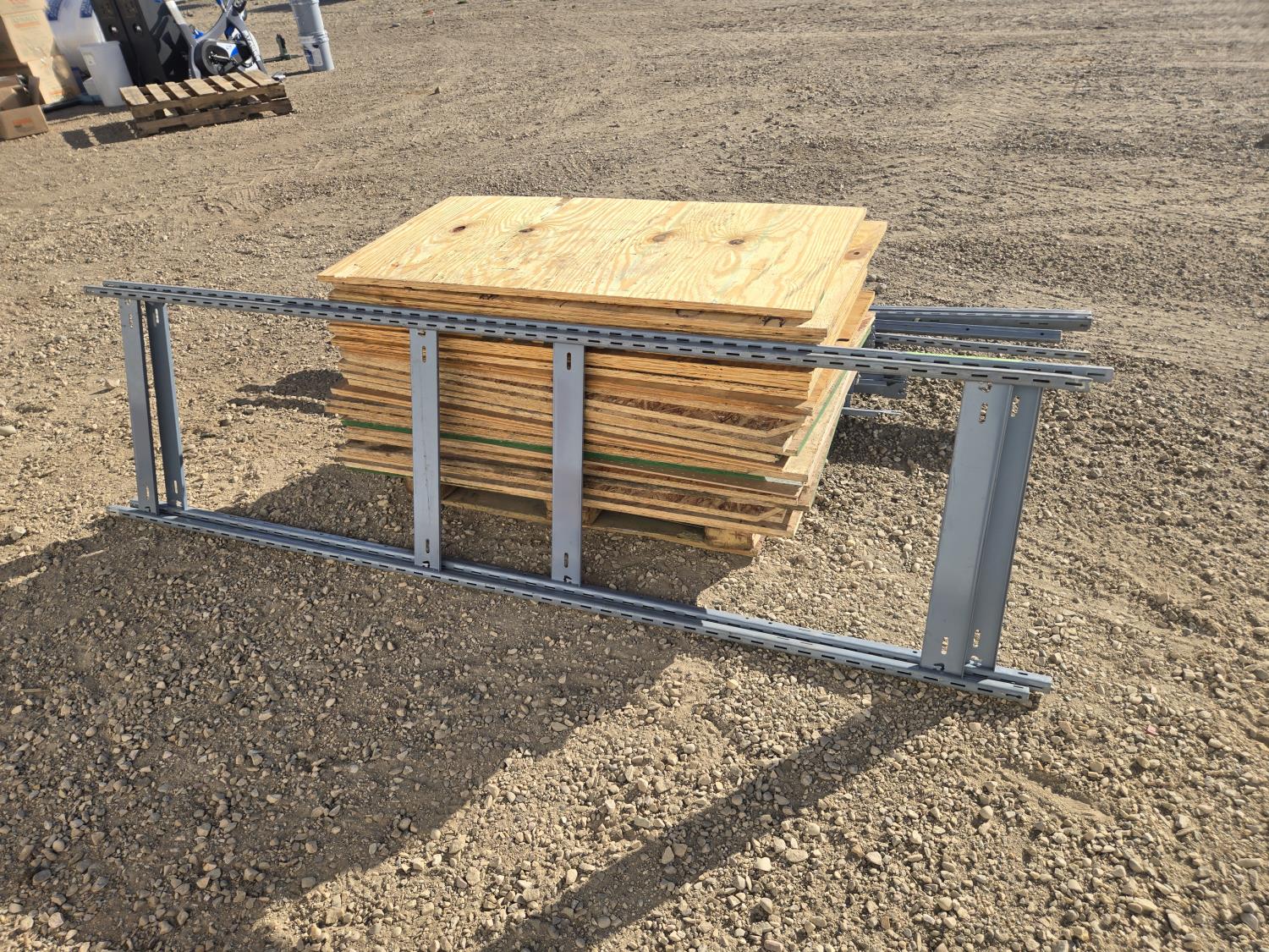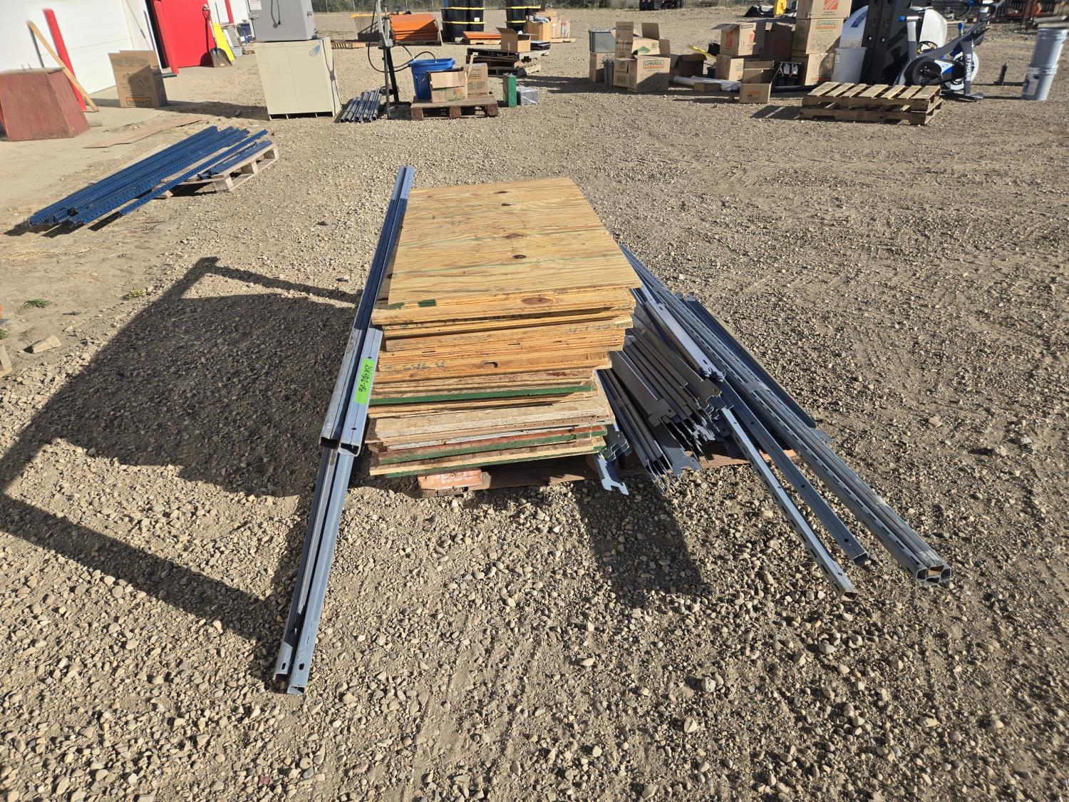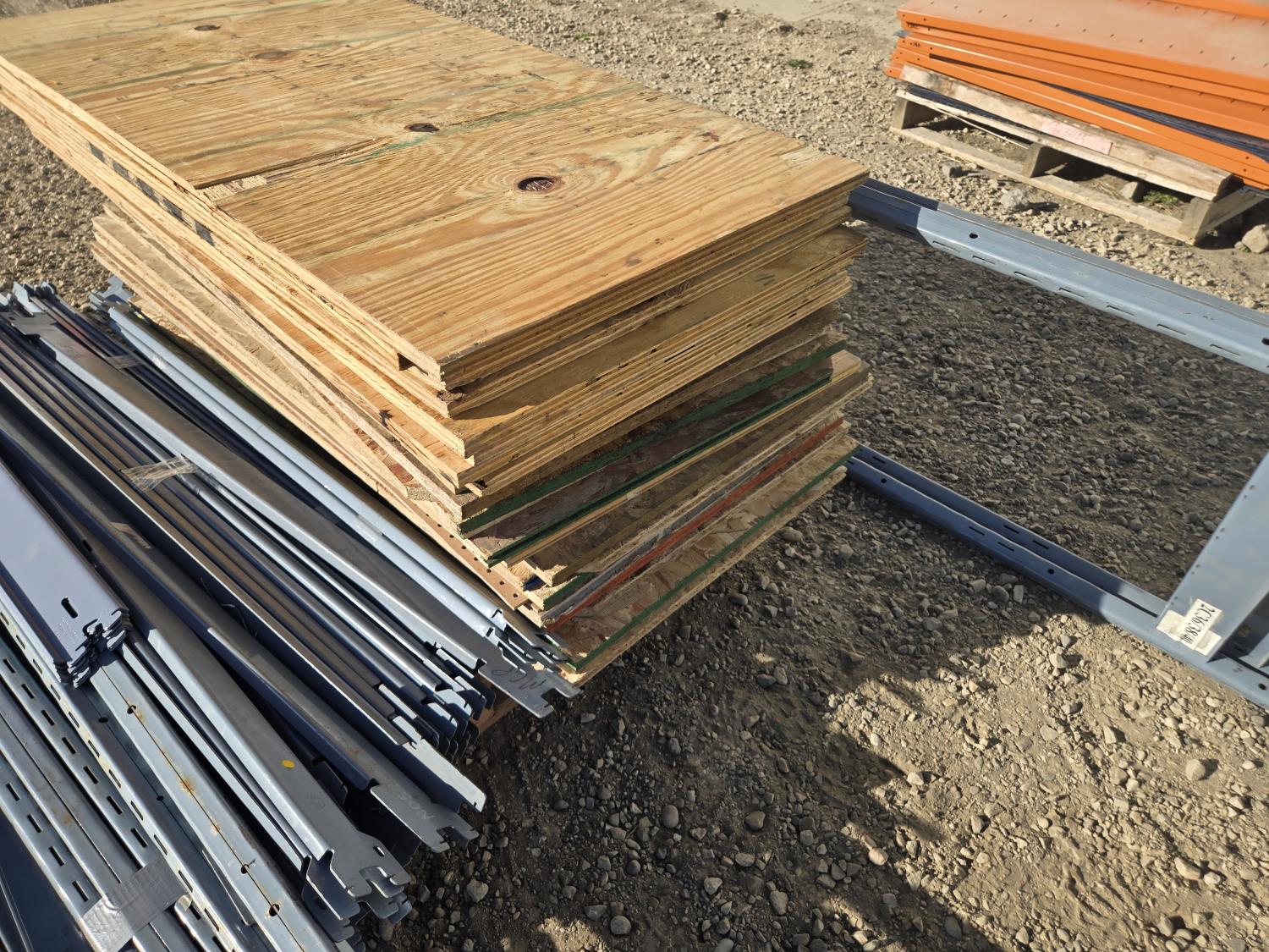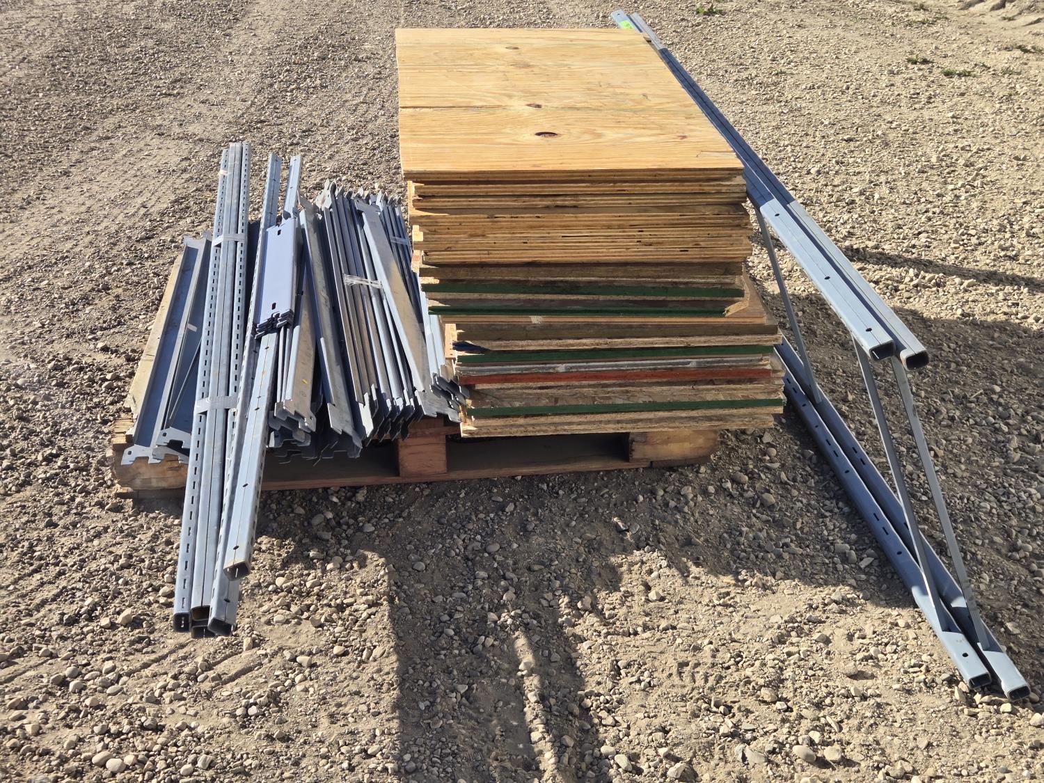 (8) end posts, qty of shelf beams, (28±) 24 inch X 48 inch wood shelfs