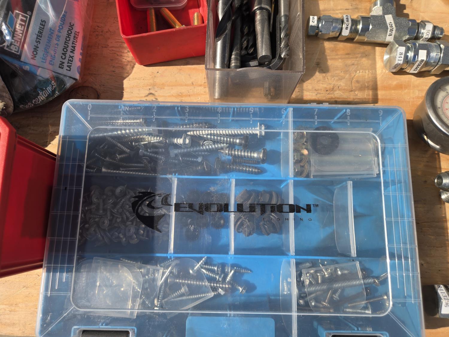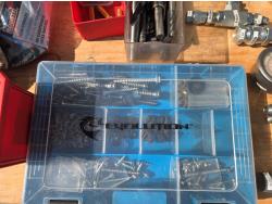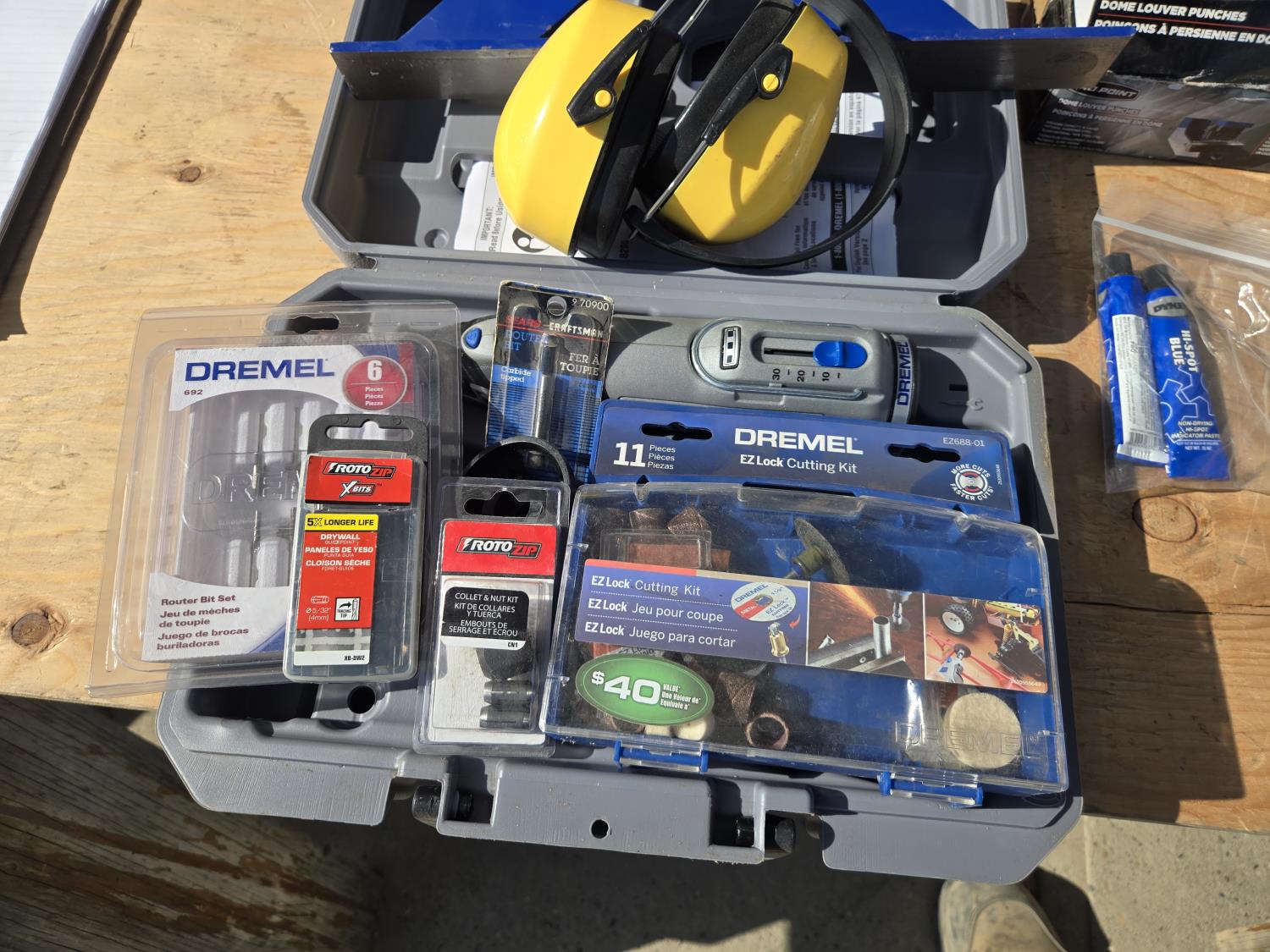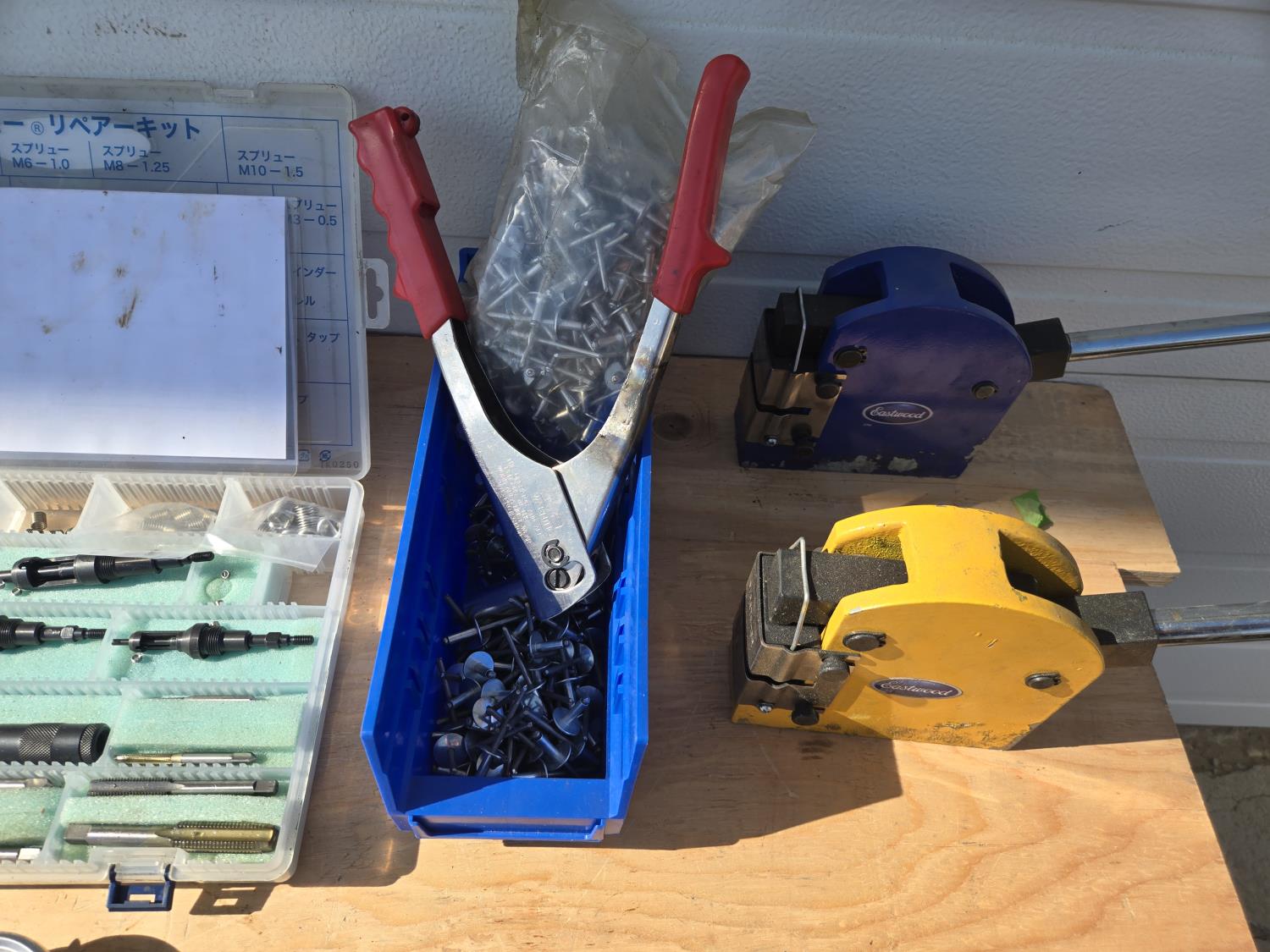 Dremel kit, bearing puller, seal driver, (2) Helicoil kits, metal shrinker, metal stretcher, pop riveter, qty of hydraulic hoses, miscellaneous items