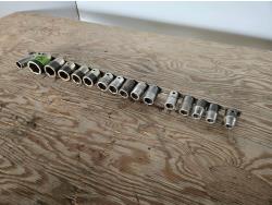 1/2 inch standard universal joint socket set, 1/2 inch torx socket set, 1/' shallow socket metric set, 3/8 deep standard socket set