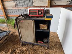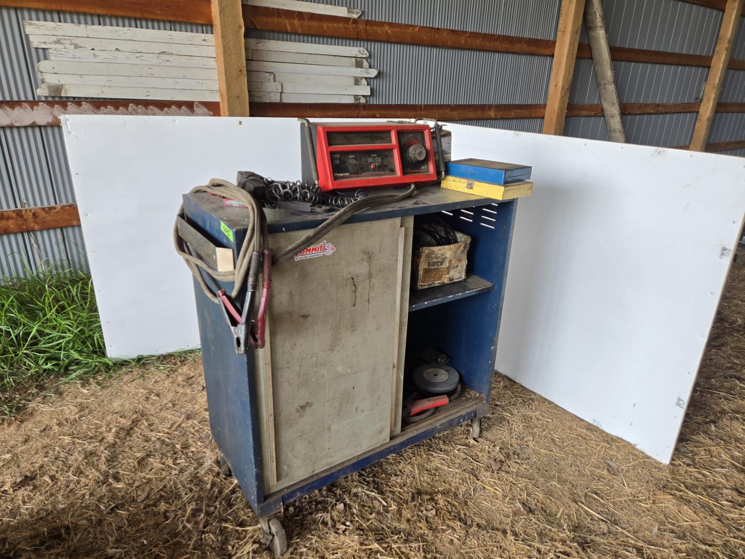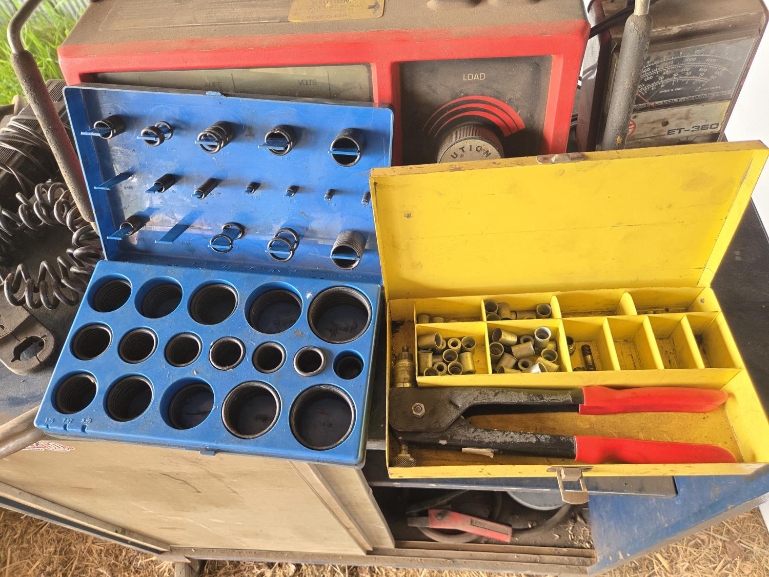 timing light, Mac dwell, volt & ohm meter, 1 inch air impact, thread insert kit, O-ring kit, bench grinder wheel, metal cabinet 19 inch deep X 40 inch wide X 41 inch high