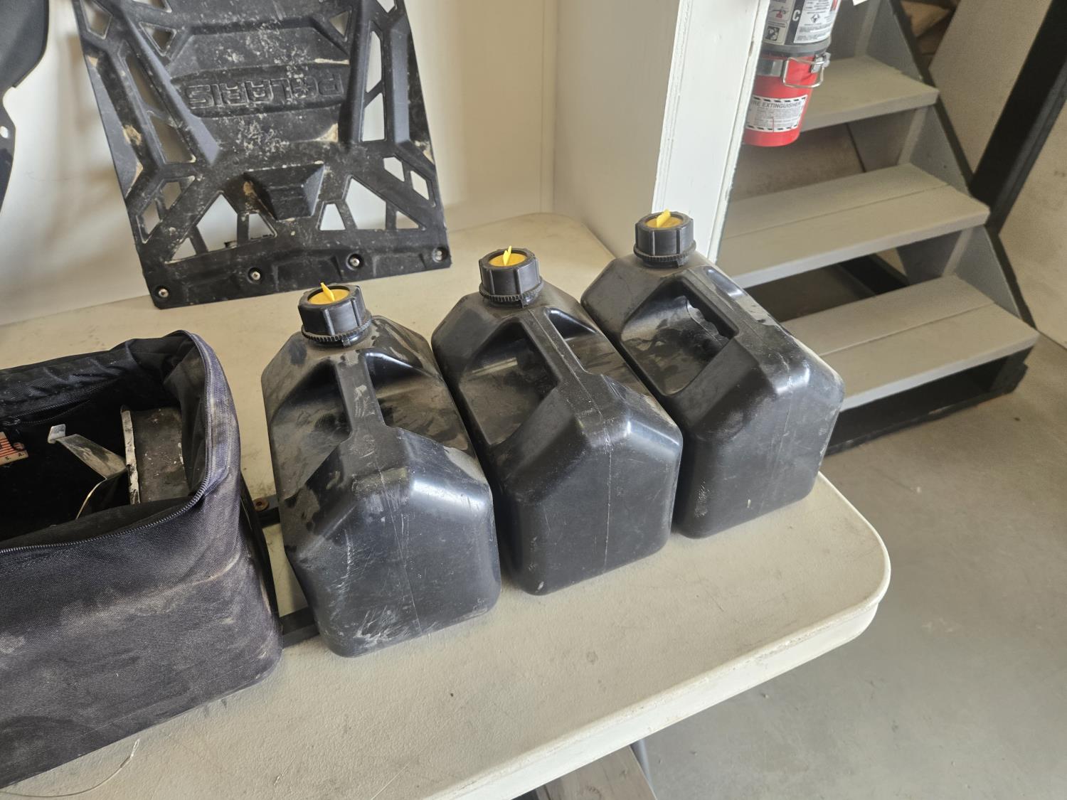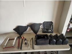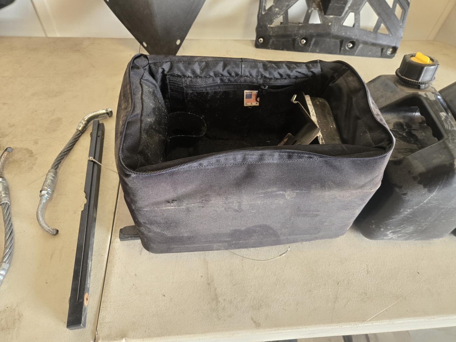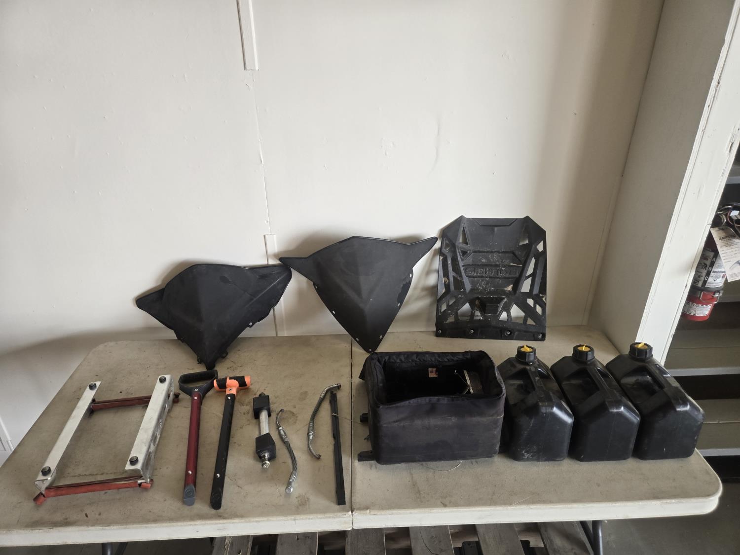 (3) Mountain addiction gas can s& (1) tunnel bag, Polaris snow flap, (2) Polaris wind shields, Polaris gas rack
