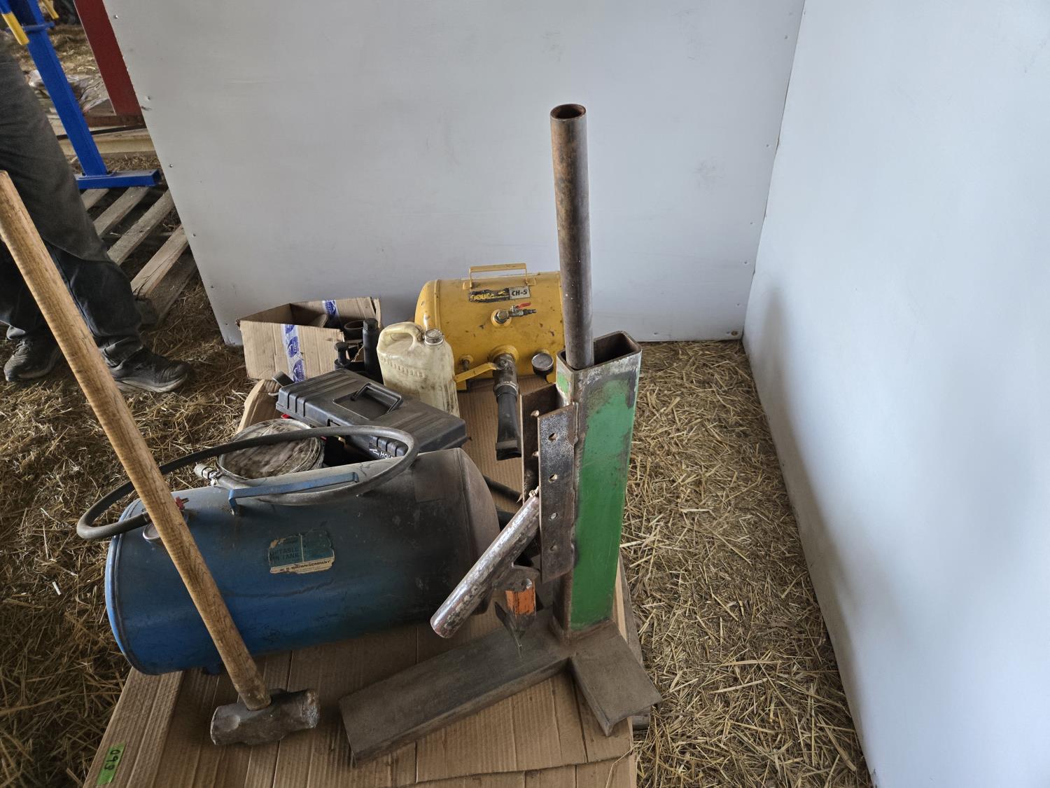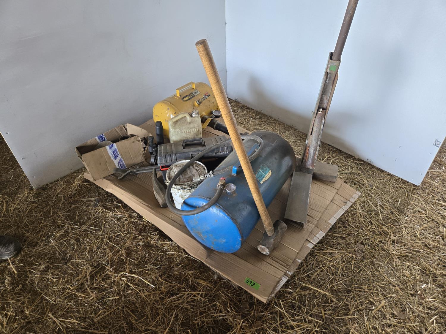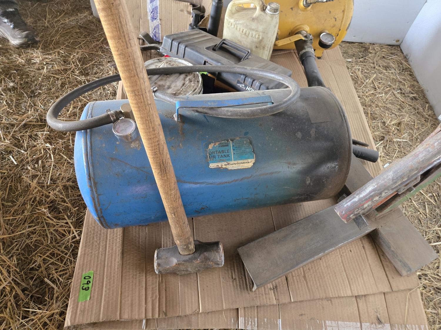Air storage tank, bead blaster, tire tools, sledge hammer