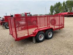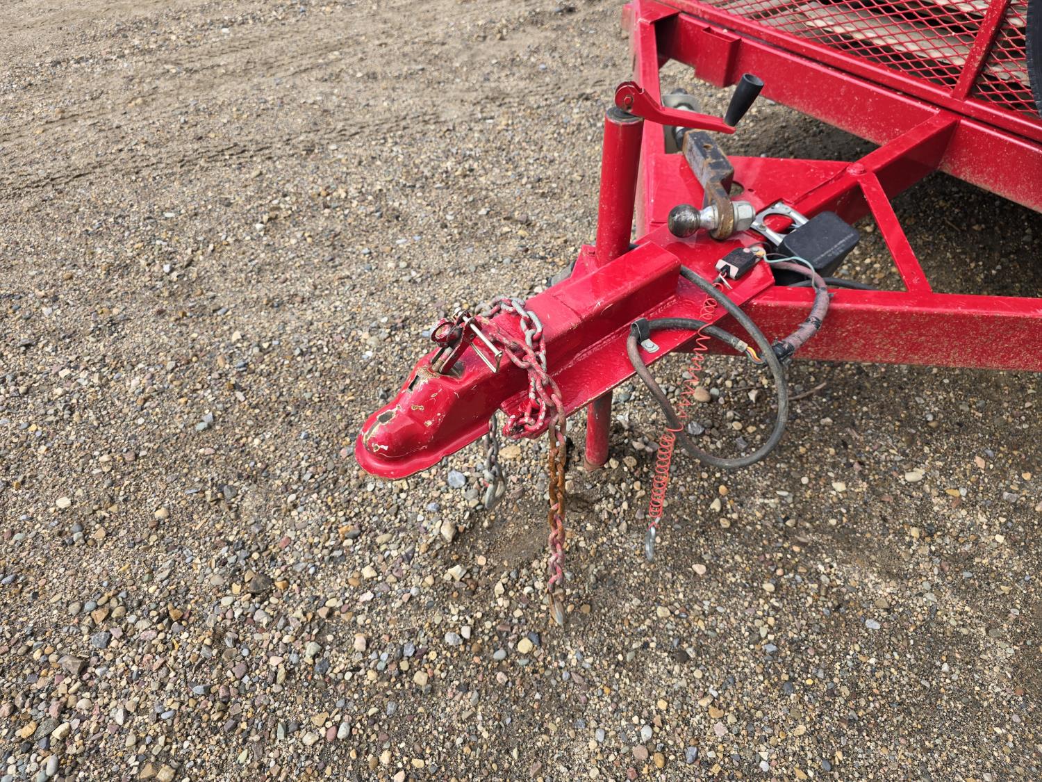 78 inch wide deck, wood deck, electric brakes, torsion spring suspension, 2-5/8 inch ball hitch, rub rails, stake pockets, 48 inch tall removable metal cage sides, LT235/85R16 tires