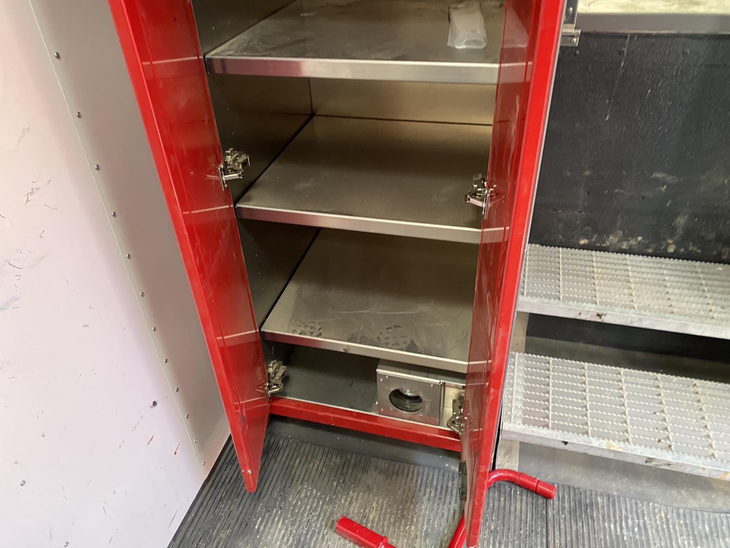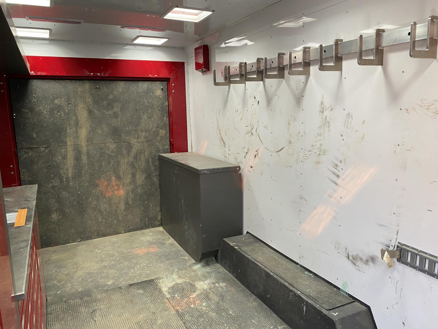 96 inch interior width, 96 inch interior height, side door, fold down door, 100 amp single phase breaker panel, Eberspacher diesel heater, electric brakes, torsion suspension, 235/85R16 tires