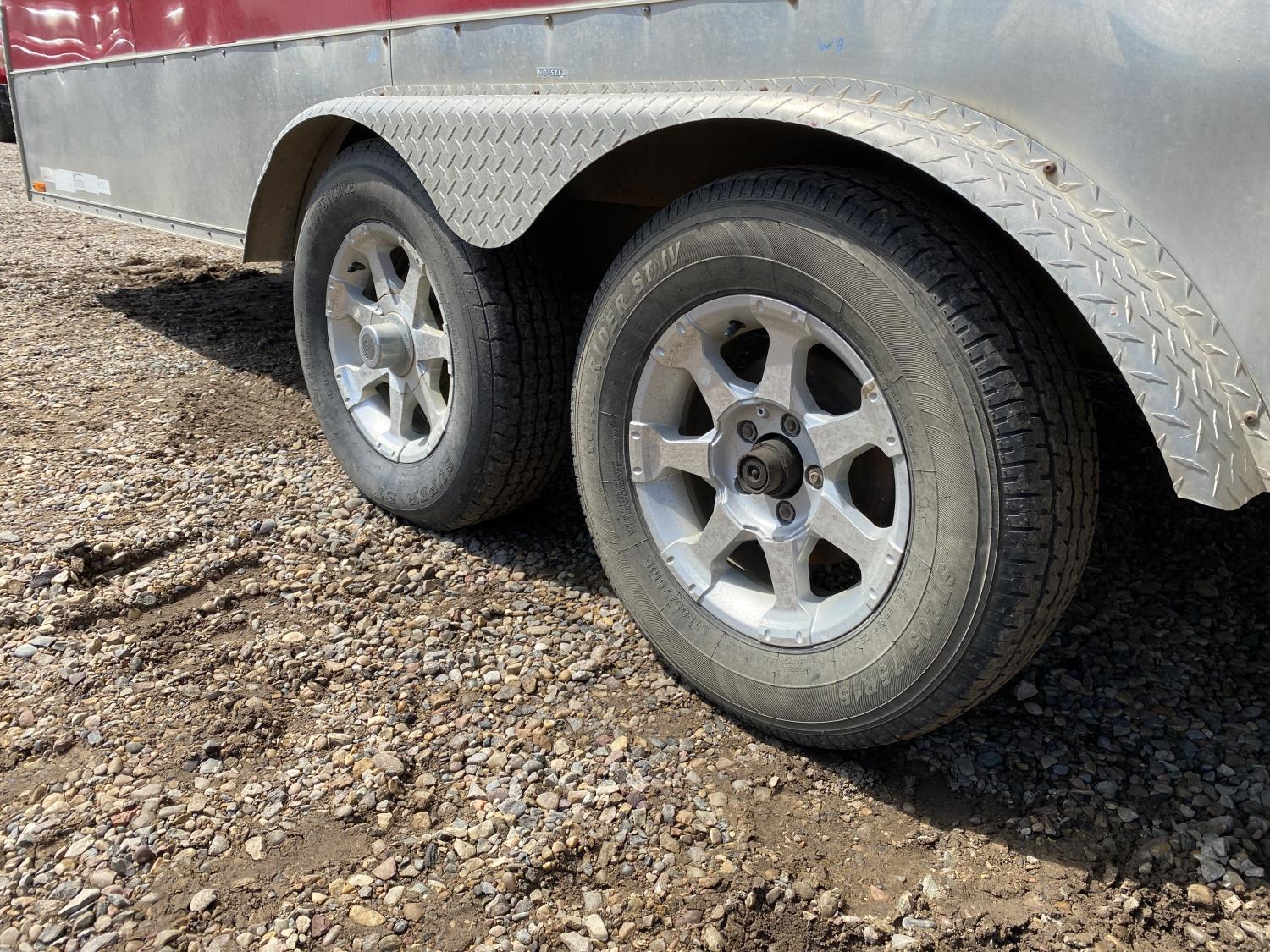 89 inch interior width, 84 inch interior height, ball hitch, side door, fold down door, electric brakes, torsion suspension, 3500 lb axles, 205/75R15 tires