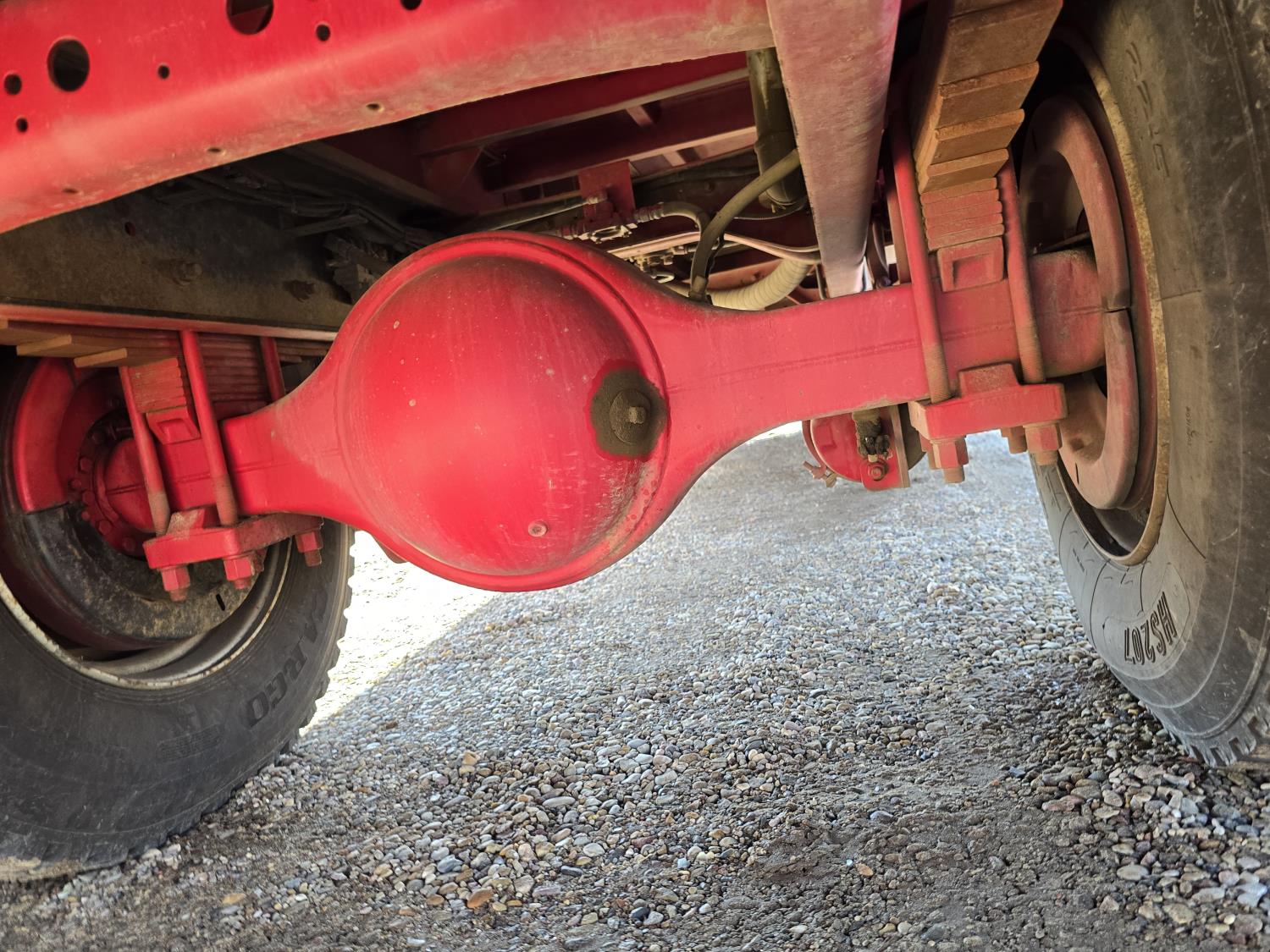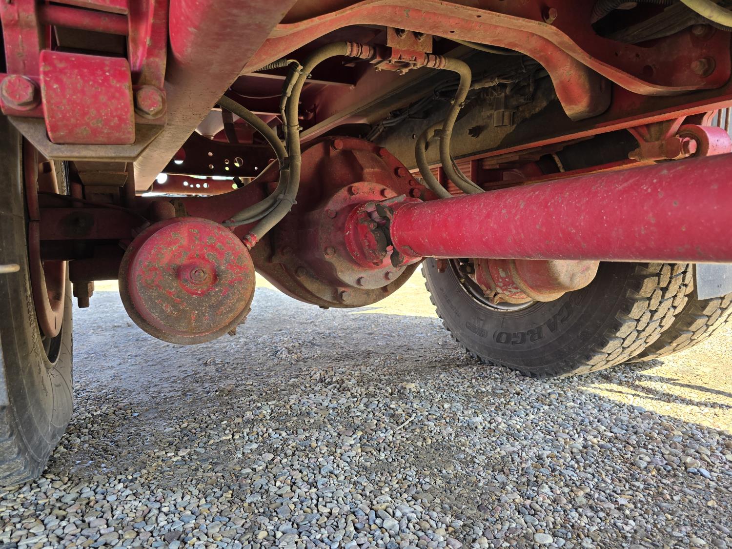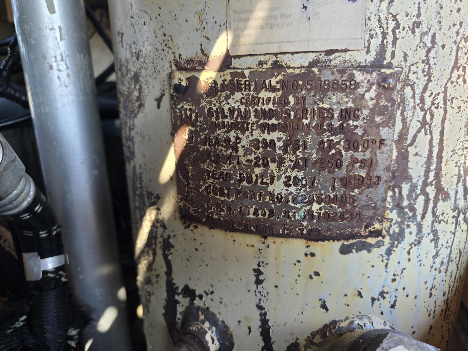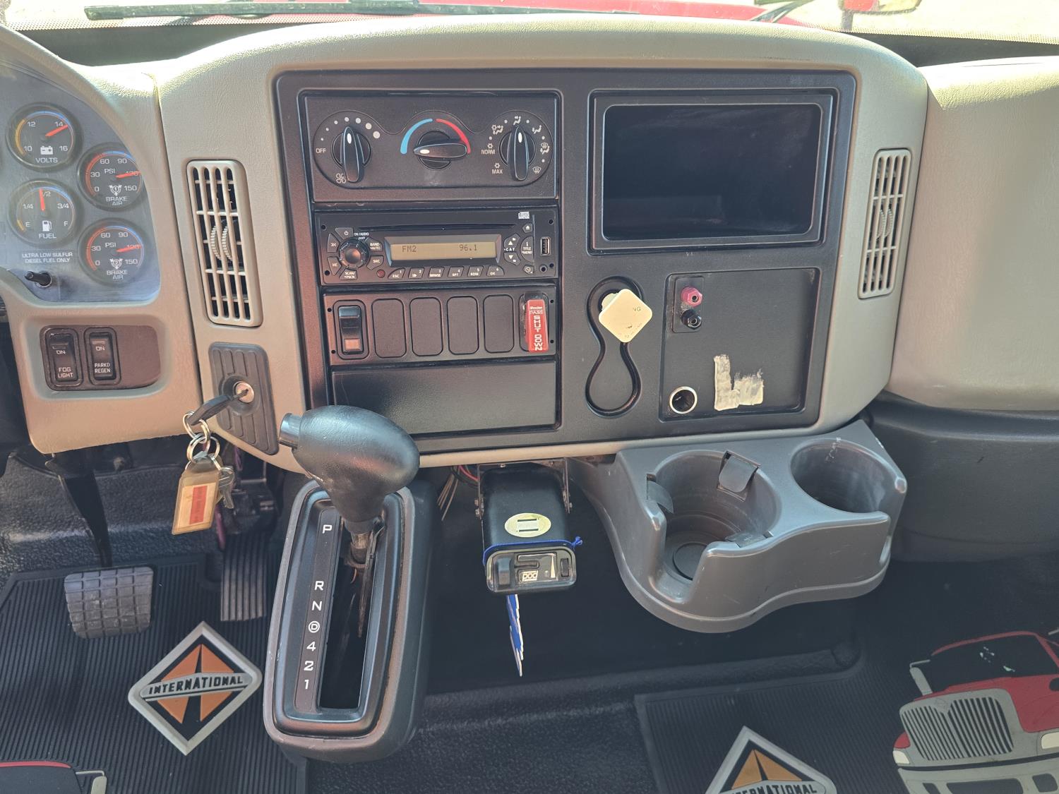 MaxxForce DT466 7.6 L 6 cylinder diesel engine, electric engine block heater, positive air shutoff, automatic transmission, A/C, P/W, P/L, cruise control, air ride driver seat, headache rack, tool boxes, 8 ft 2 inch x 19 ft 6 inch deck, Ingersoll Rand 425 CFM compressor, 2018 200 PSI air dryer, 600 lb blast pot, Webasto heater on compressor, beacons, spring suspension, 18,500 lb front axle, 26,000 lb rear axles, 255 inch WB, 11R22.5 tires