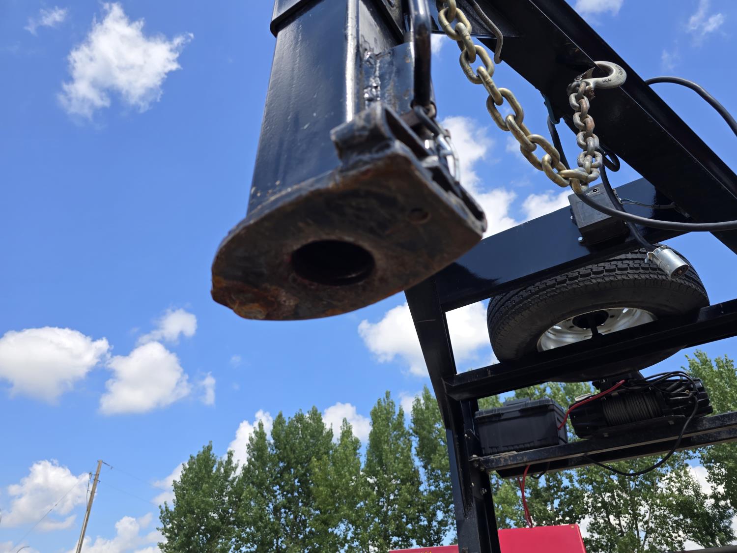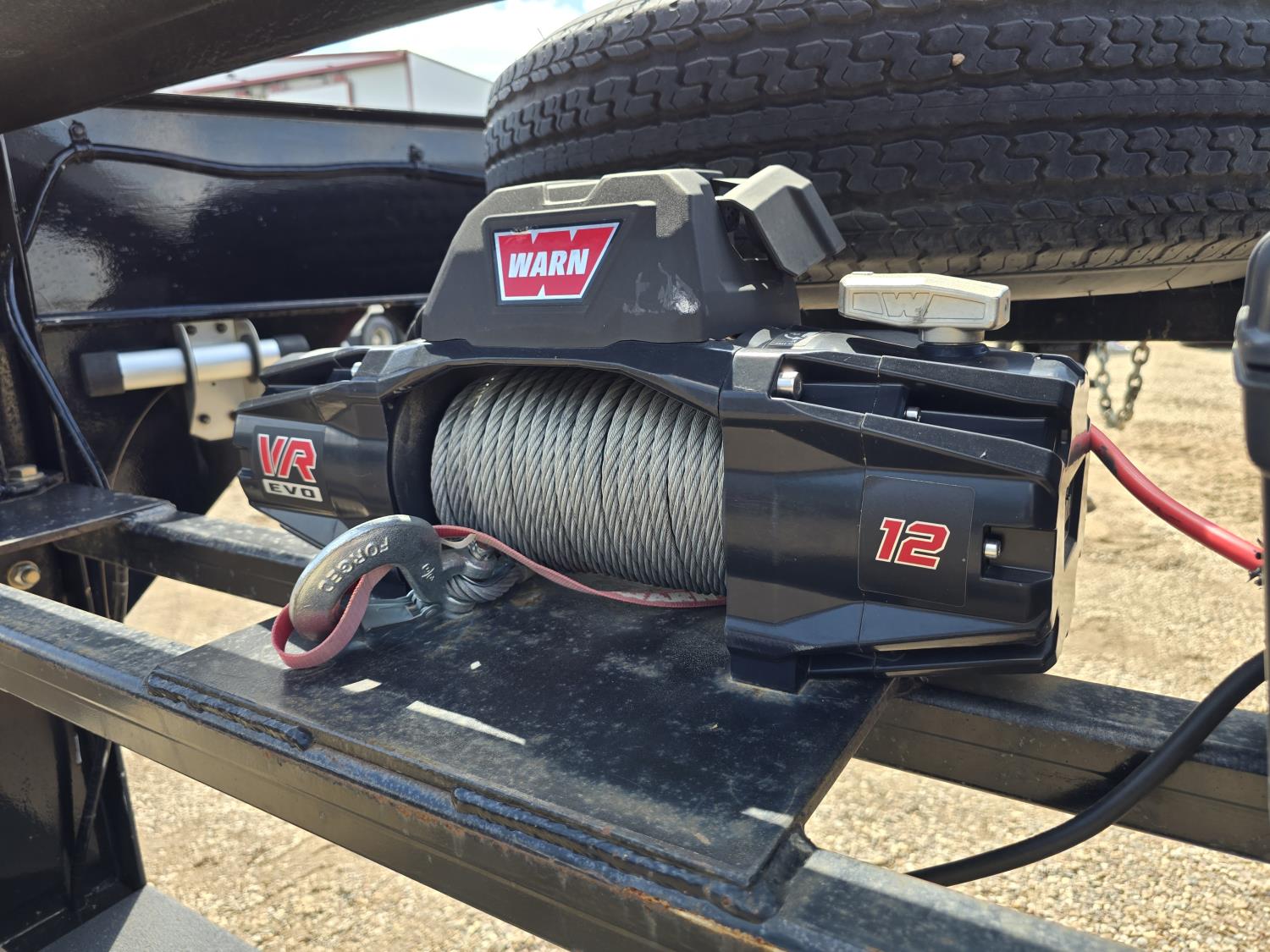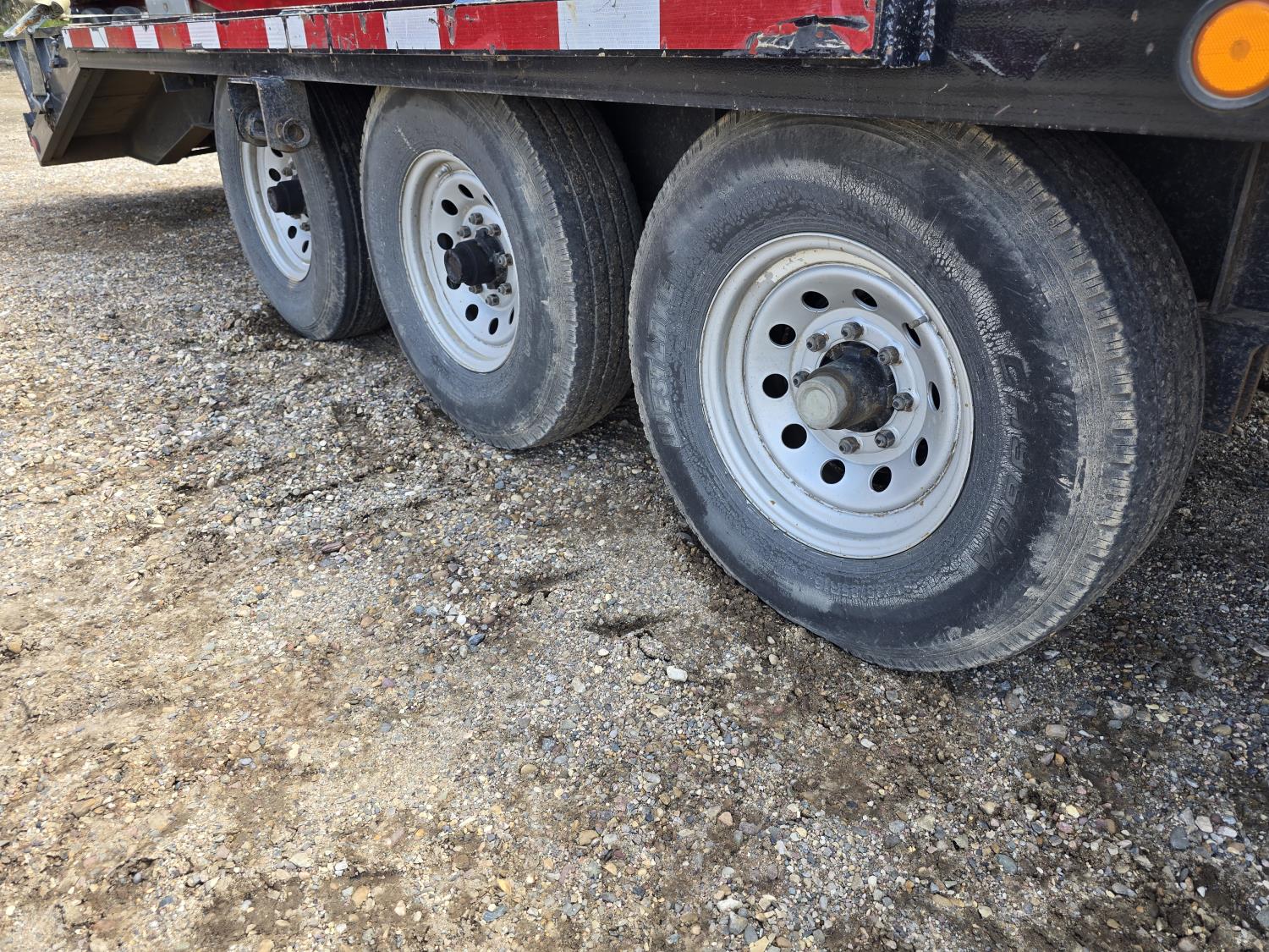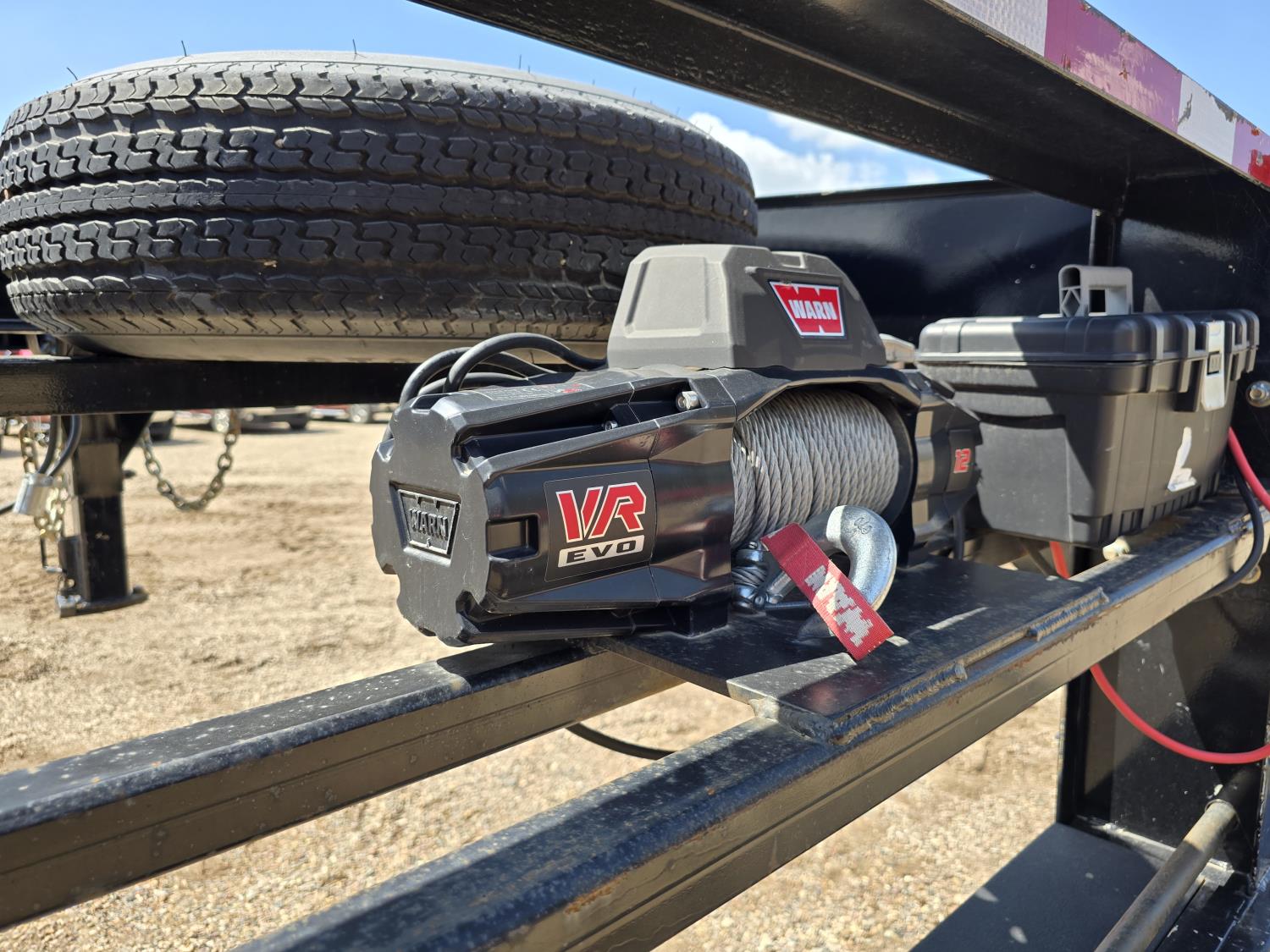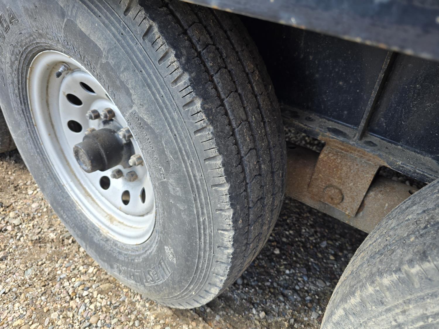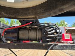 101 inch wide deck, 60 inch beaver tails, wood deck, flip over ramps, electric brakes, rub rails, stake pockets, torsion spring suspension, Warn 12V winch, 7000 lb axles, 235/85R16 tires