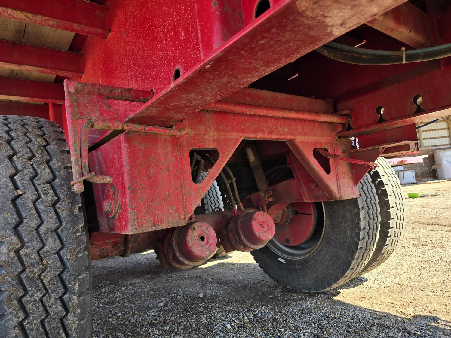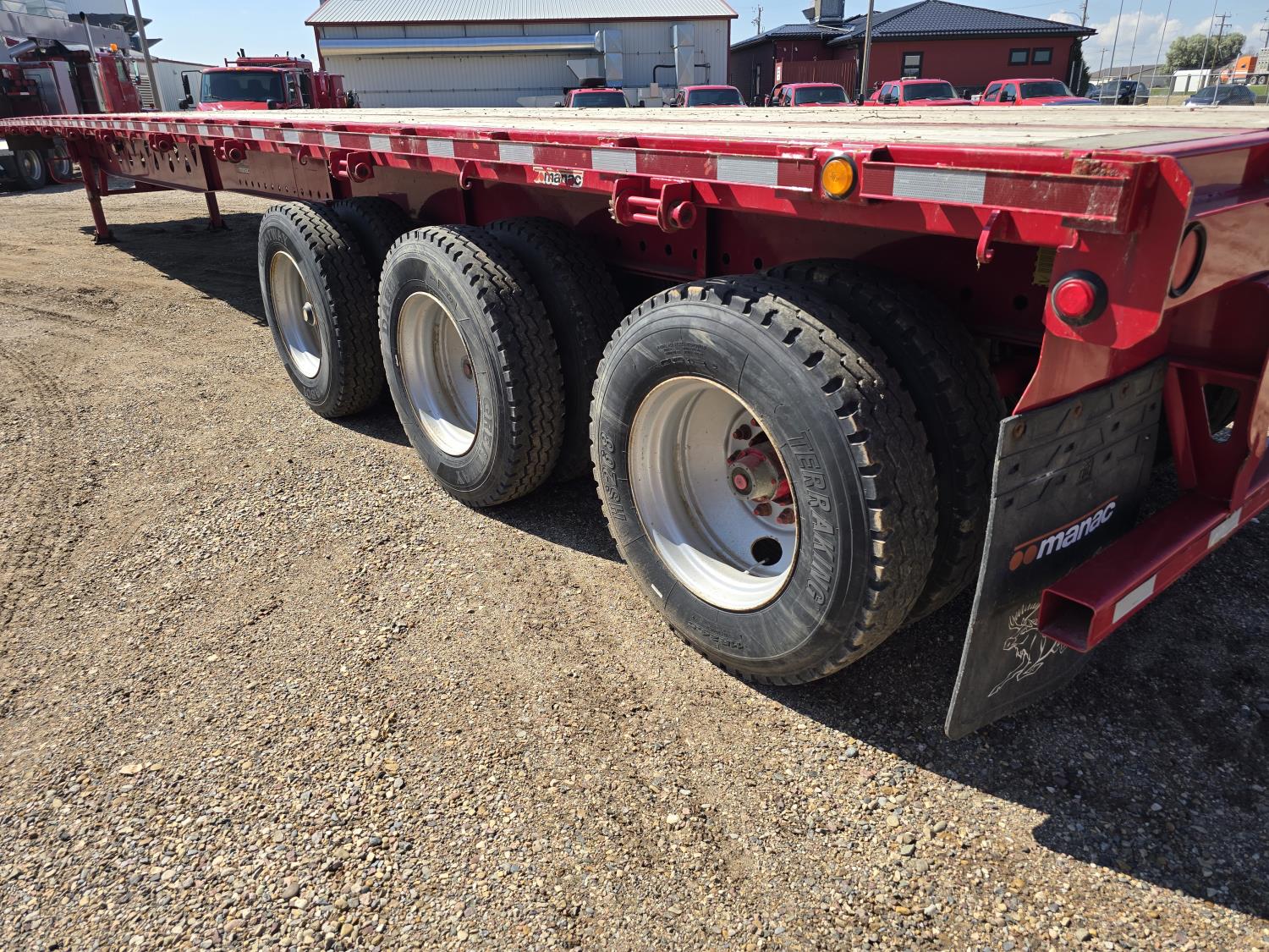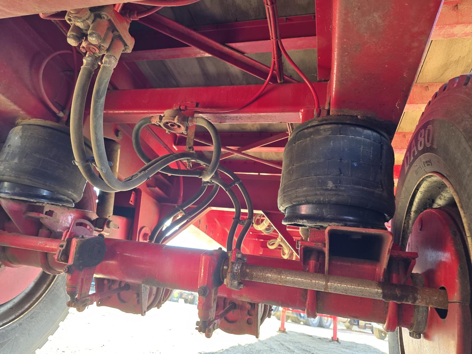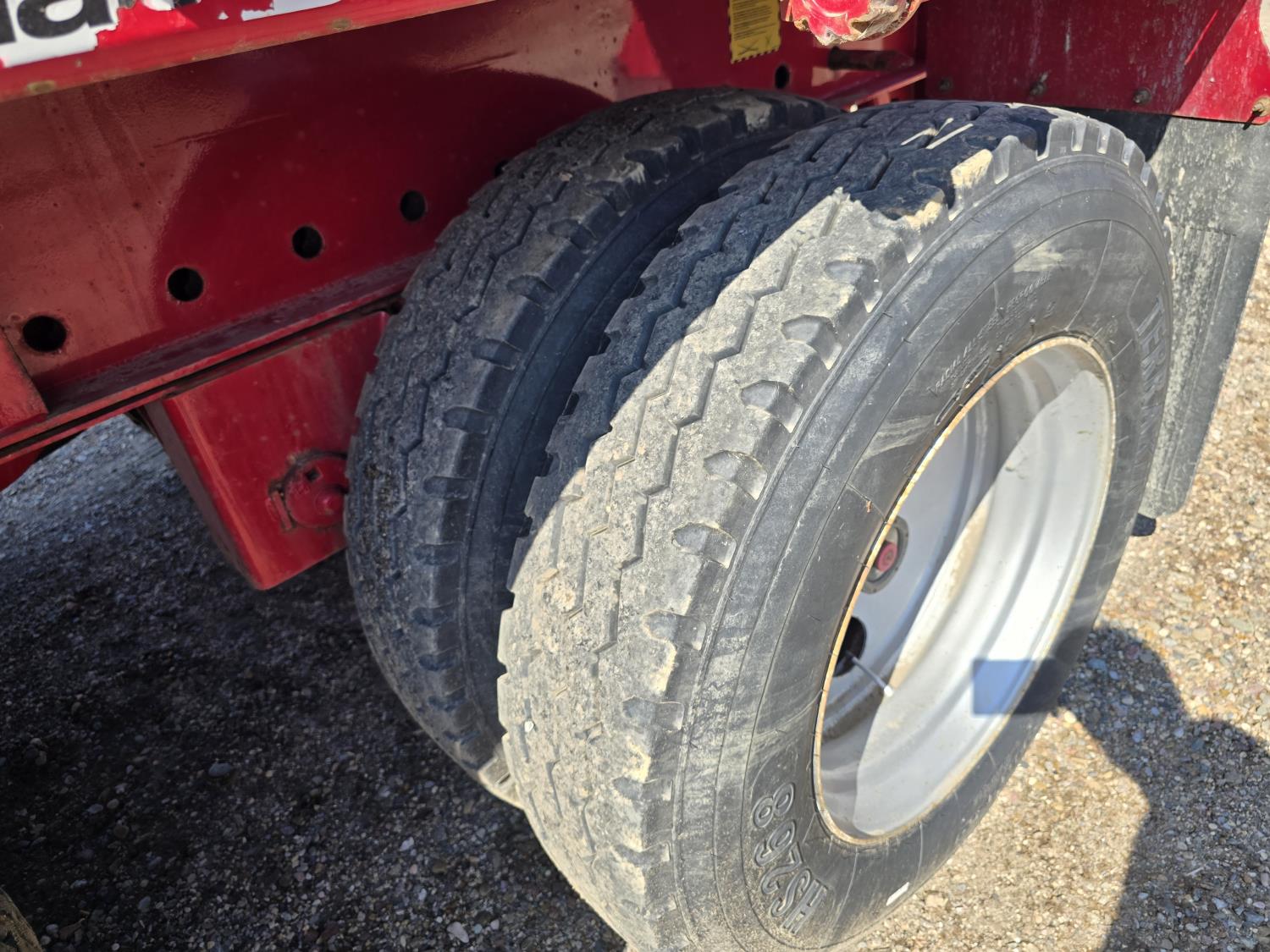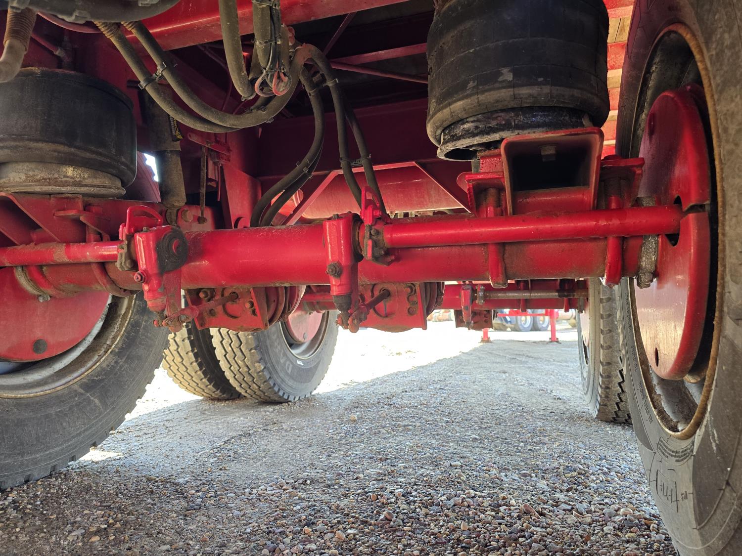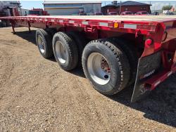 102 inch wide deck, wood deck, stake pockets, rub rails, cargo winches, air brakes, 20,000 lb axles, air ride suspension, 11R24.5 tires