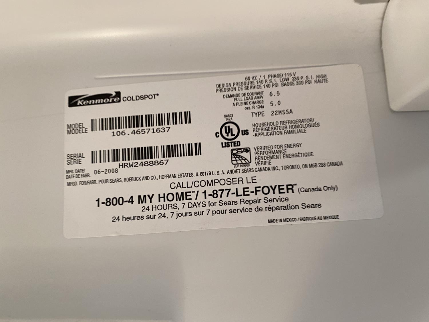 1014 Kenmore Coldspot 33 Inch Fridge w/ Water Dispenser & Ice Maker