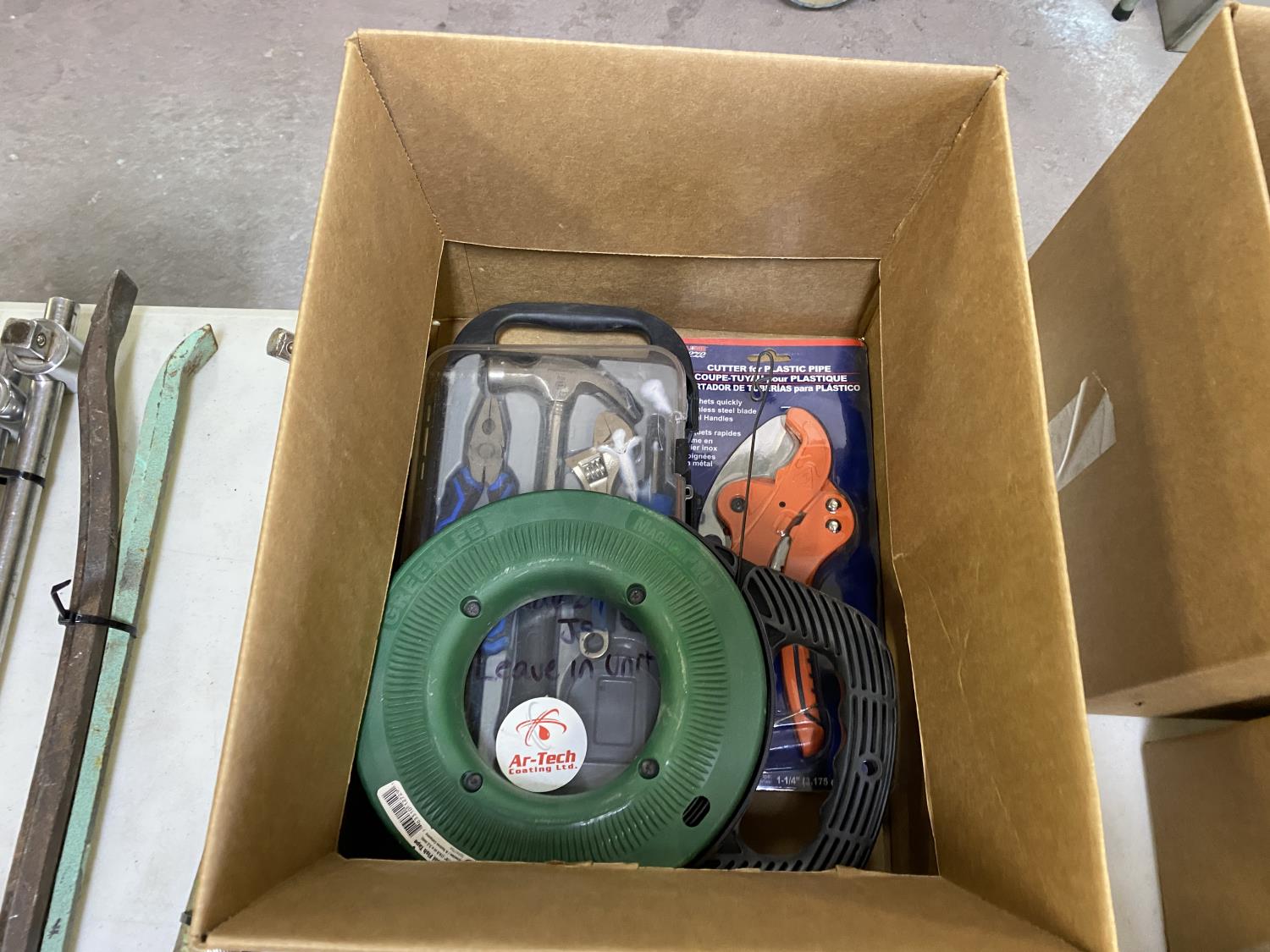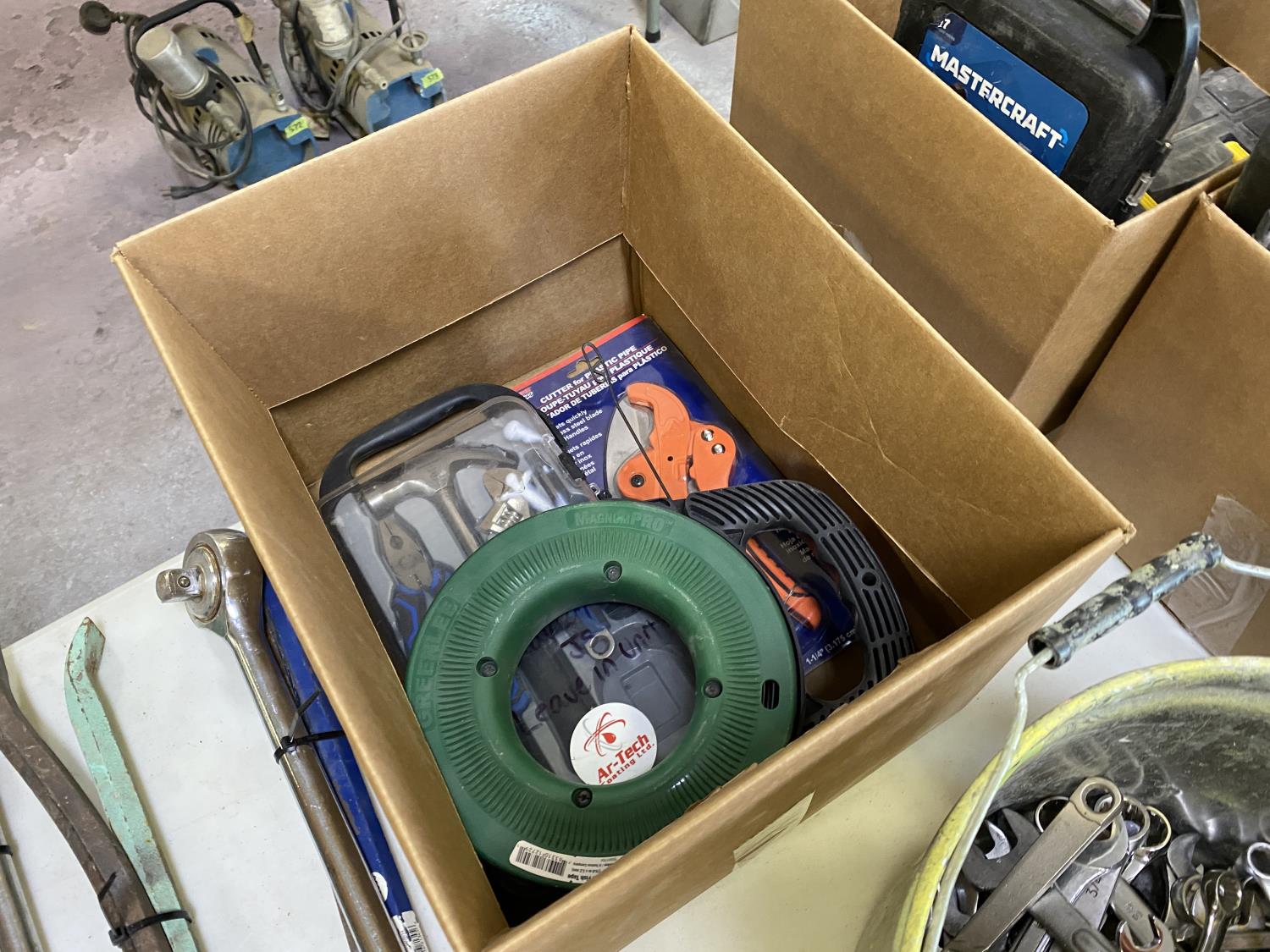 includes Mastercraft tool kit, 65 ft steel fish tape, plastic pipe cutter
