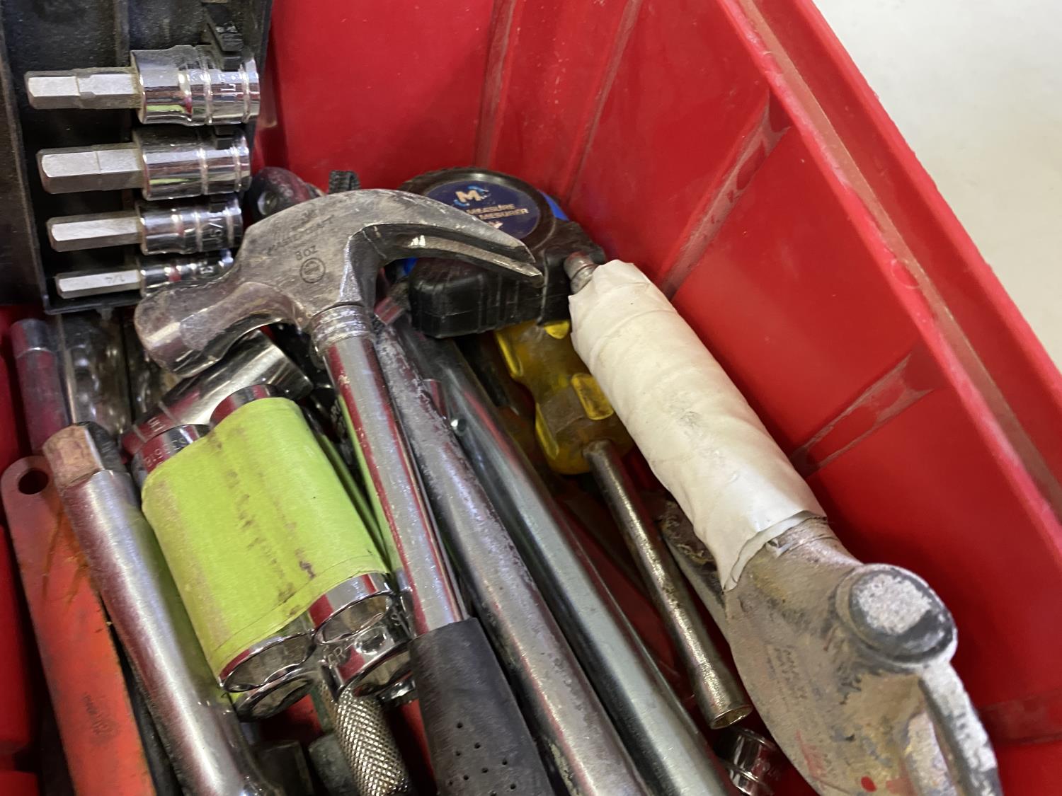 includes hammer, sockets, pliers