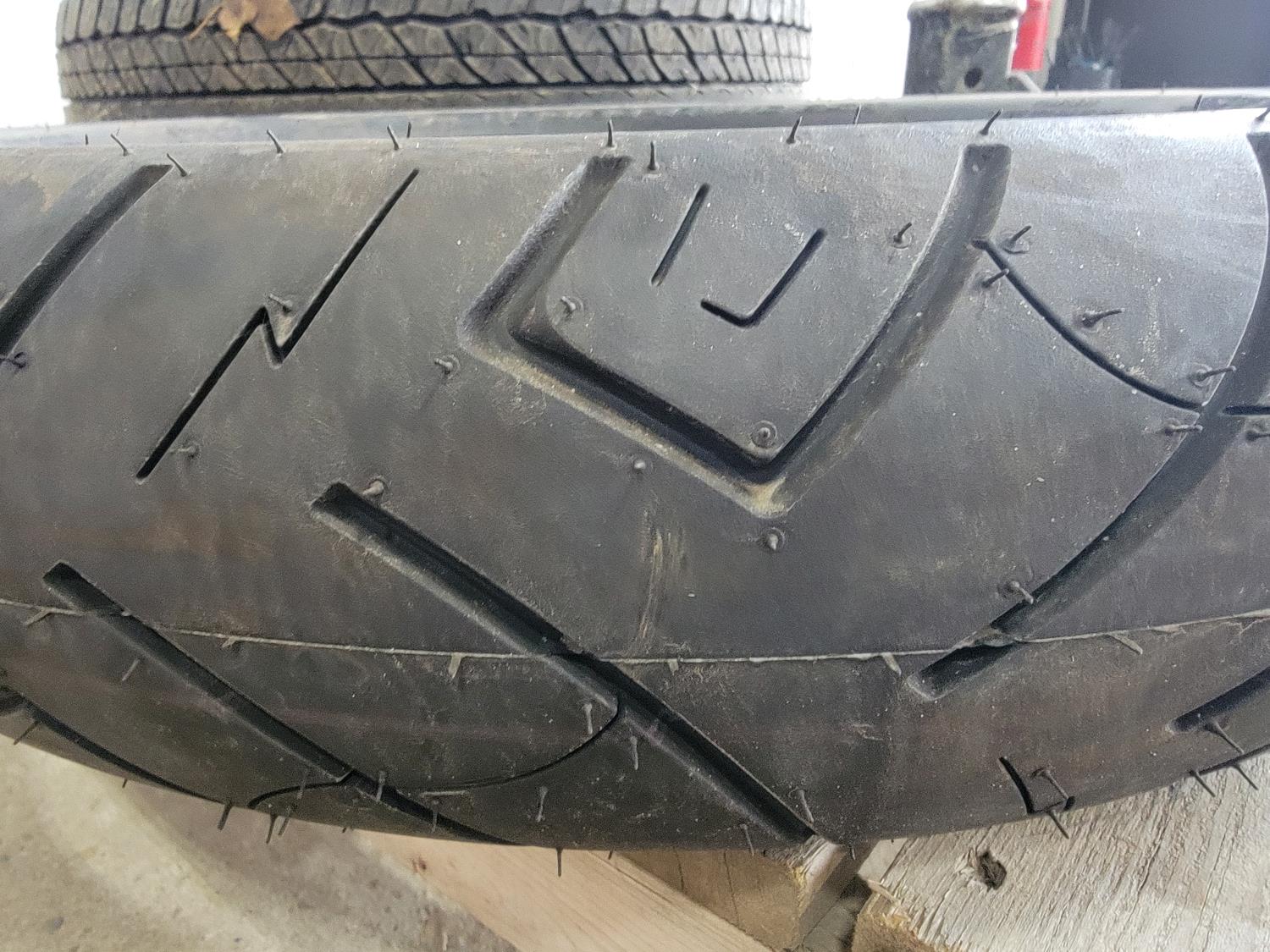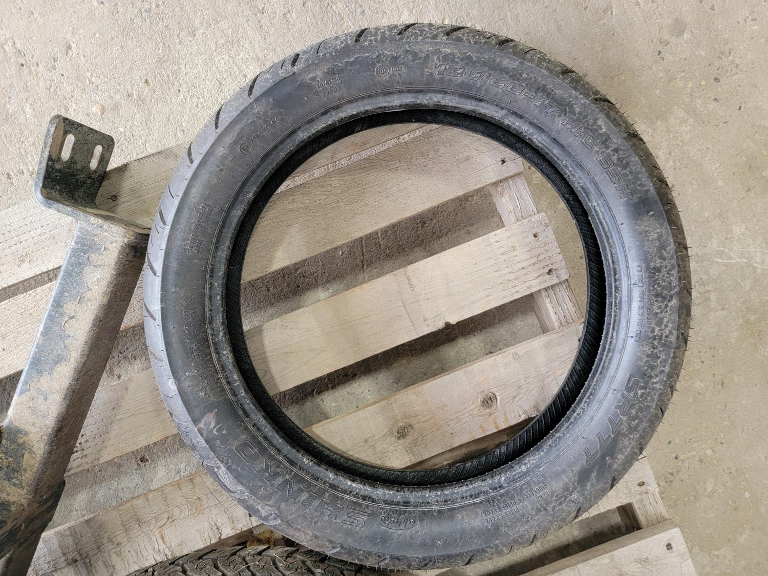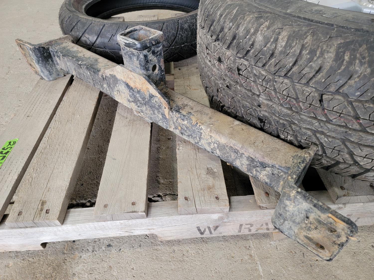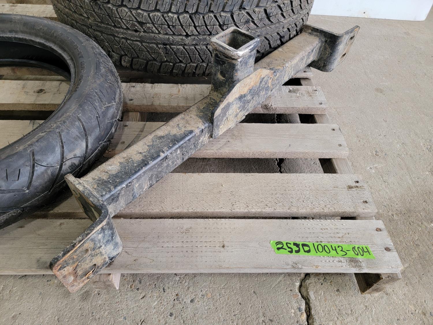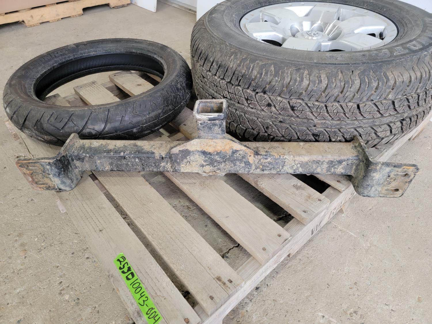 1173 (1) Shinko SR777 130/80-17 Motorcycle Tire, (1) Dunlop 265/70R17 Tire On 6 Bolt Rim and Front Mount Trailer Hitch Receiver